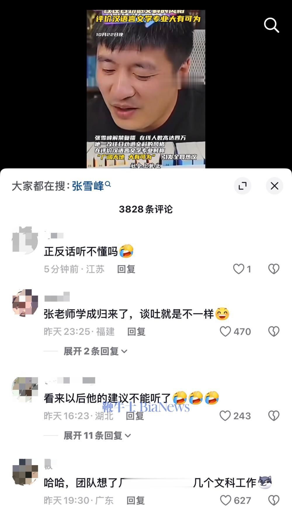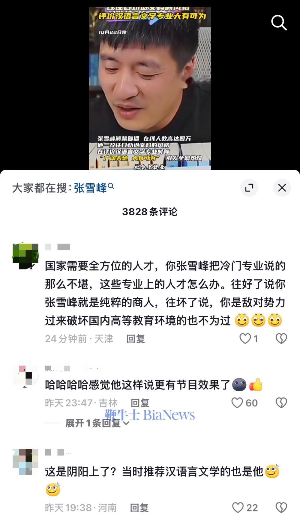 近日,据哈尔滨日报,张雪峰解封后首次直播,一改往日劝退文科风格,评价汉语言文学专业“广阔天地,大有可为”,引发网友热议。