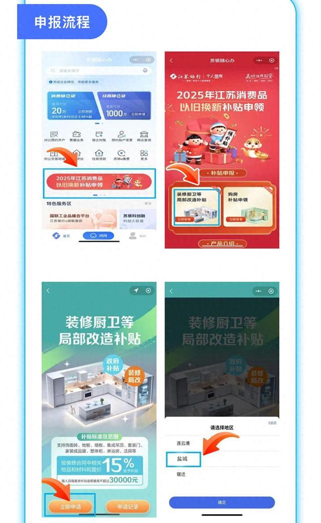 今年以来,盐城市住建局通过“三精准”举措推动旧房改造消费提质升级。在精准施策方面,政策覆盖全市城乡住宅,对地板、洁具等9类装修材料给予购置总价15%的补贴,单套住房最高补贴3万元。在精准服务方面,创新采用“线上申请+全程网办”模式,市民可通过“苏银随心办”微信小程序一站式完成材料提交与进度查询;全市共设立市、县两级咨询服务点12个,审批周期缩短40%。在精准监管方面,建立“双核查”机制,县级100%现场核验,市级抽查不低于50%,并健全资金使用追踪及退货追回机制。