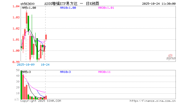 A500增强ETF易方达(563600)业绩比较基准为中证A500指数收益率,管理人为易方达基金管理有限公司,基金经理为黄浩东,成立(2025-09-10)以来回报为0.79%,近一个月回报为0.61%。
