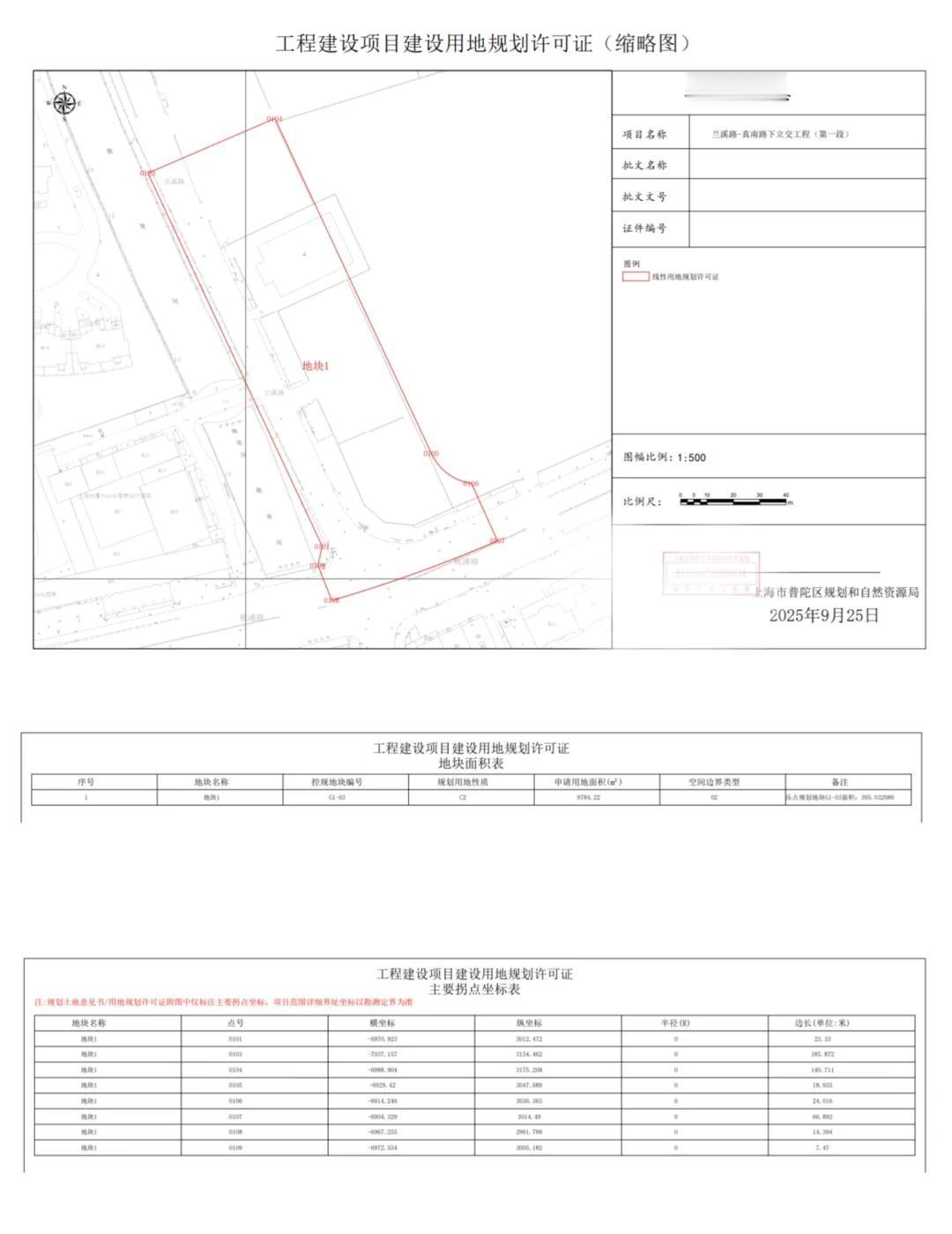 真如副中心 668_兰溪路-真南路下立交第一段 建设用地规划许可要求 项目名称:兰溪路-真南路下立交工程(第一段)。 建设用地位置:普陀区真如镇街道,南至桃浦路、北至兰溪路隧道敞开段起点。 用地面积:9784.22平方米。 土地用途:城镇村道路用地。 建设规模:道路长约180米,规划红线宽度52.5米(以审定设计方案为准)。 土地取得方式:划拨。 真如 真如副中心 上海 普陀 兰溪路隧道 兰溪路 上海西站