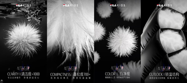 本季FILAKIDS以"每个孩子都是未经雕琢的钻石"为灵感,将钻石的珍贵与纯净转化为冬日的温度语言。孩子的成长,是光芒渐现的过程,而FILAKIDS则希望通过科技与美学的雕琢,让每一个孩子的闪耀被温柔笼罩。从原料选绒到设计打磨,每一克钻石绒都凝结了FILAKIDS对高品质与美学的执着。全新升级的"4C钻石绒科技"体系,灵感融合钻石分级标准——蓬松度(Compactness)、白净度(Color)、清洁度(Clarity)与锁温结构(CutLock)。FILAKIDS将钻石的四大标准转化为羽绒科技语言,融合高科技、高标准与高审美,为孩子带来可视、可触、可感的恒久温暖。以简洁廓形融入时尚线条,锁温同时保持轻盈不坍塌,将"专业温度"化为可以触摸的品质感,让孩子在纯净的冰雪世界中,感受大自然的壮丽与宁静,激发他们对未知的好奇与探索的勇气。