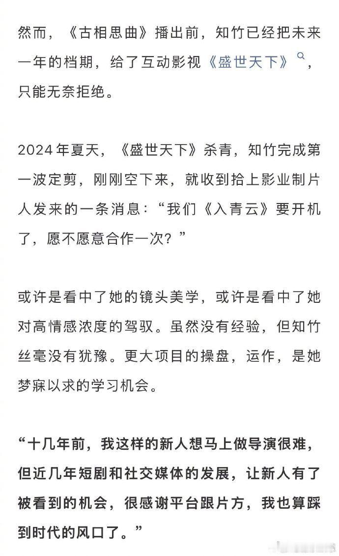 入青云导演说侯明昊非常稳重靠谱 刚补完导演的独家对话,原来侯明昊在剧组这么靠谱!导演之前以为他只是好看的美少年,接触后发现超有“大哥感”,卢昱晓也被夸有灵气,连浴池吻戏拍一晚上、导演姨母笑一晚上,晓晓泡完澡瘦一圈的小细节都好真实,太喜欢这种幕后分享了!