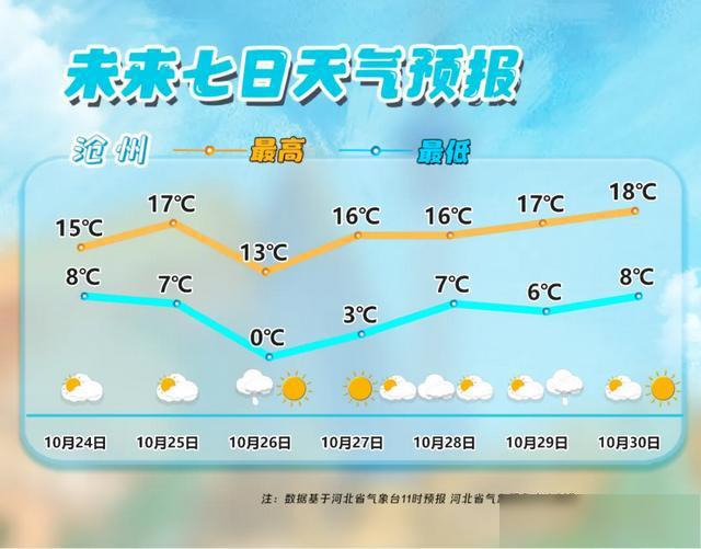 自10月18日起,沧州各地的日平均气温均低于10℃。截至10月22日,沧州各地日平均气温持续低于10℃已满5天。因此,沧州全域从10月18日开始,已经正式进入气象学意义上的冬天。