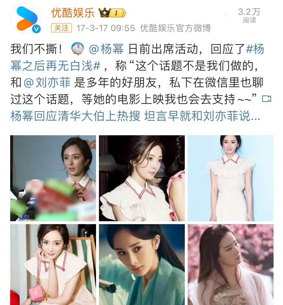 考古了一下,杨幂和刘亦菲之前是好朋友,后来因为那句“杨幂之后再无白浅”闹掰的!