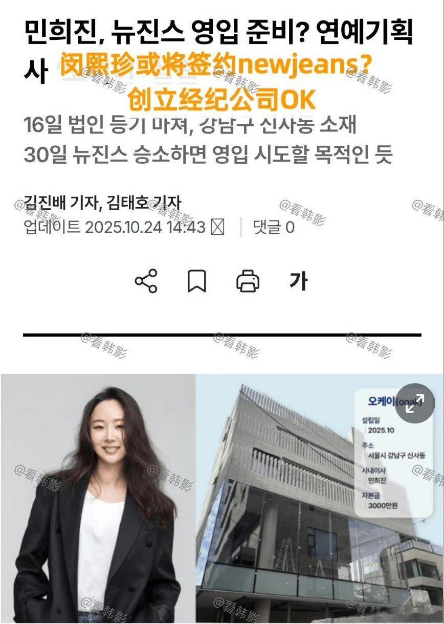 #闵熙珍或将签约NJZ##闵熙珍准备签约NJZ#闵熙珍成立新公司ooak…准备签约NewJeans?