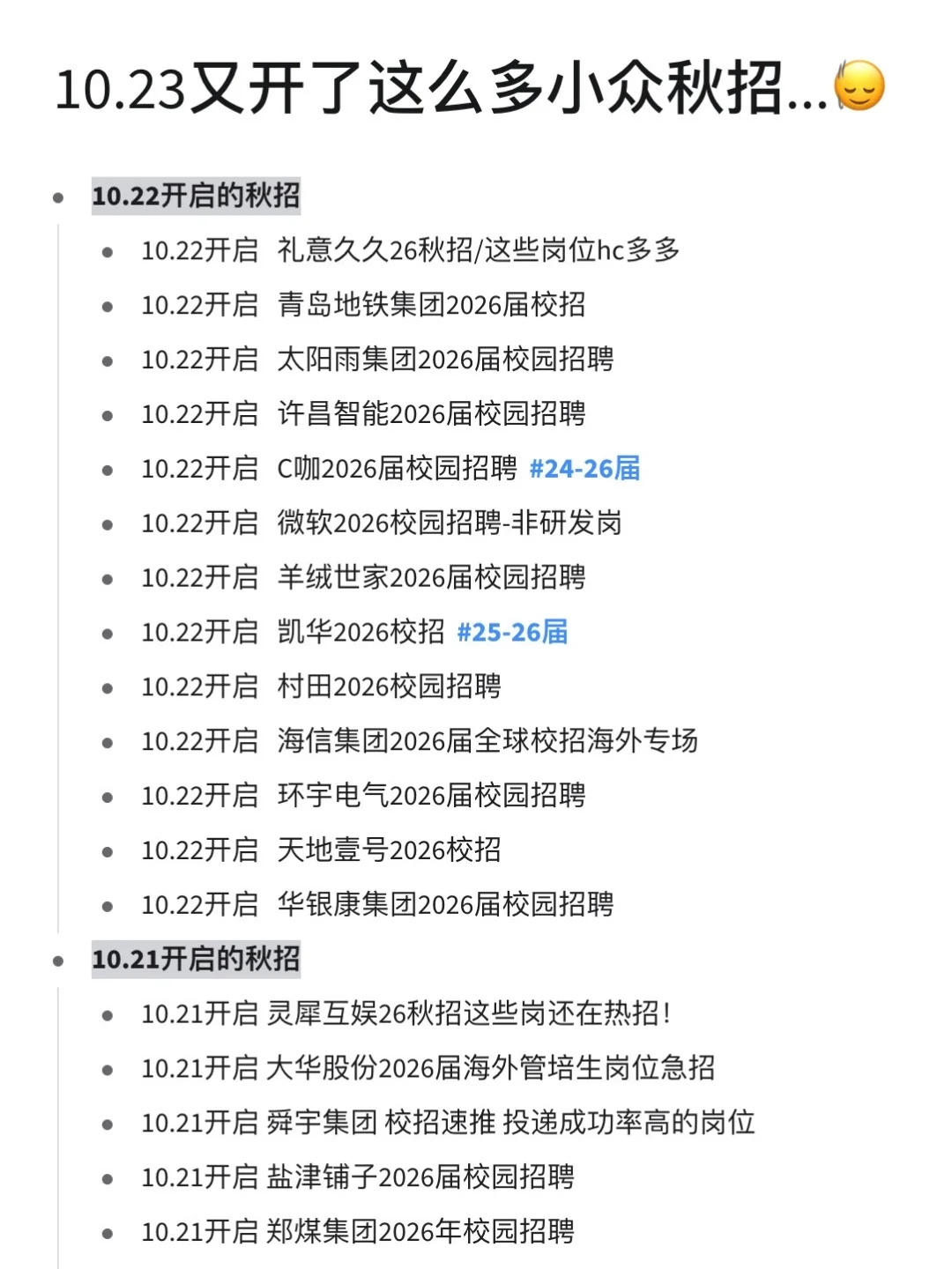 10月过半,这个阶段好多都是小众公司在悄悄开启秋招,岗位优质、门槛友好、流程还快,这才是秋招最适合普通人的捡漏期啊 . 10月小众秋招突围指南 ▪️简历要弱化学历背景,强化项目细节,使用JD中的专业术语提升匹配度,量化成果 ▪️面试前要深入研究公司业务模式,准备3个行业趋势洞察,展示快速学习能力和务实态度 ▪️信息获取要关注垂直领域科技媒体,加入行业社群获取内推,善用Linkedln搜索“急招”岗位 . 坚持日更✊🏻,帮大家在找工作路上顺利拿到offer! .