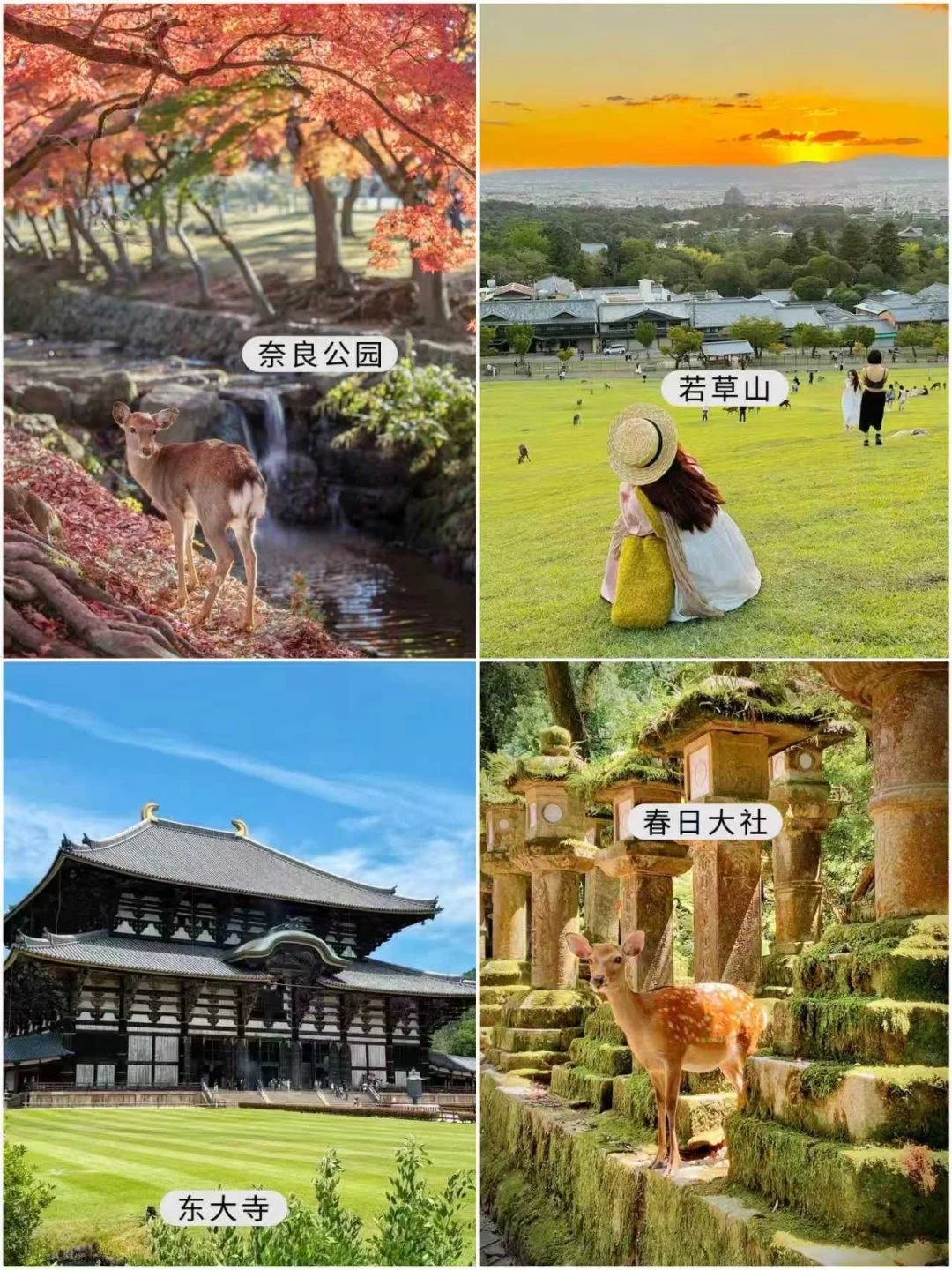 💡奈良公园🦌:这里的小鹿是一大特色,它们会鞠躬讨食,十分可爱,可以购买鹿饼与小鹿亲密互动~公园内还有东大寺等著名景点