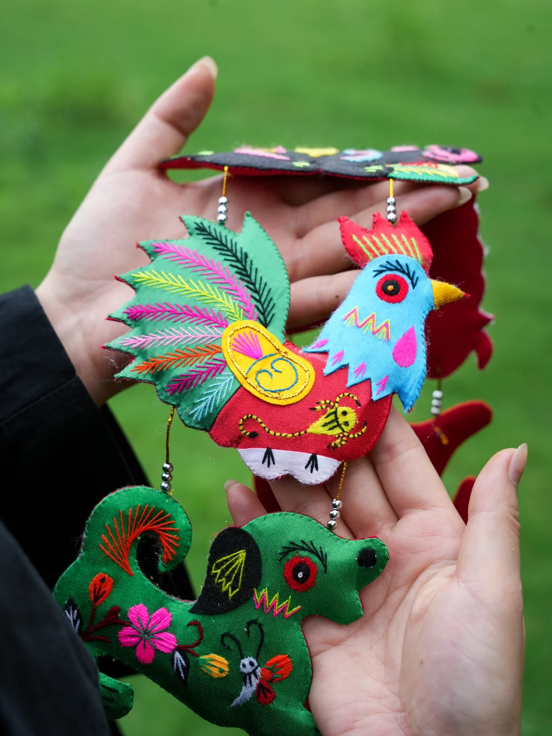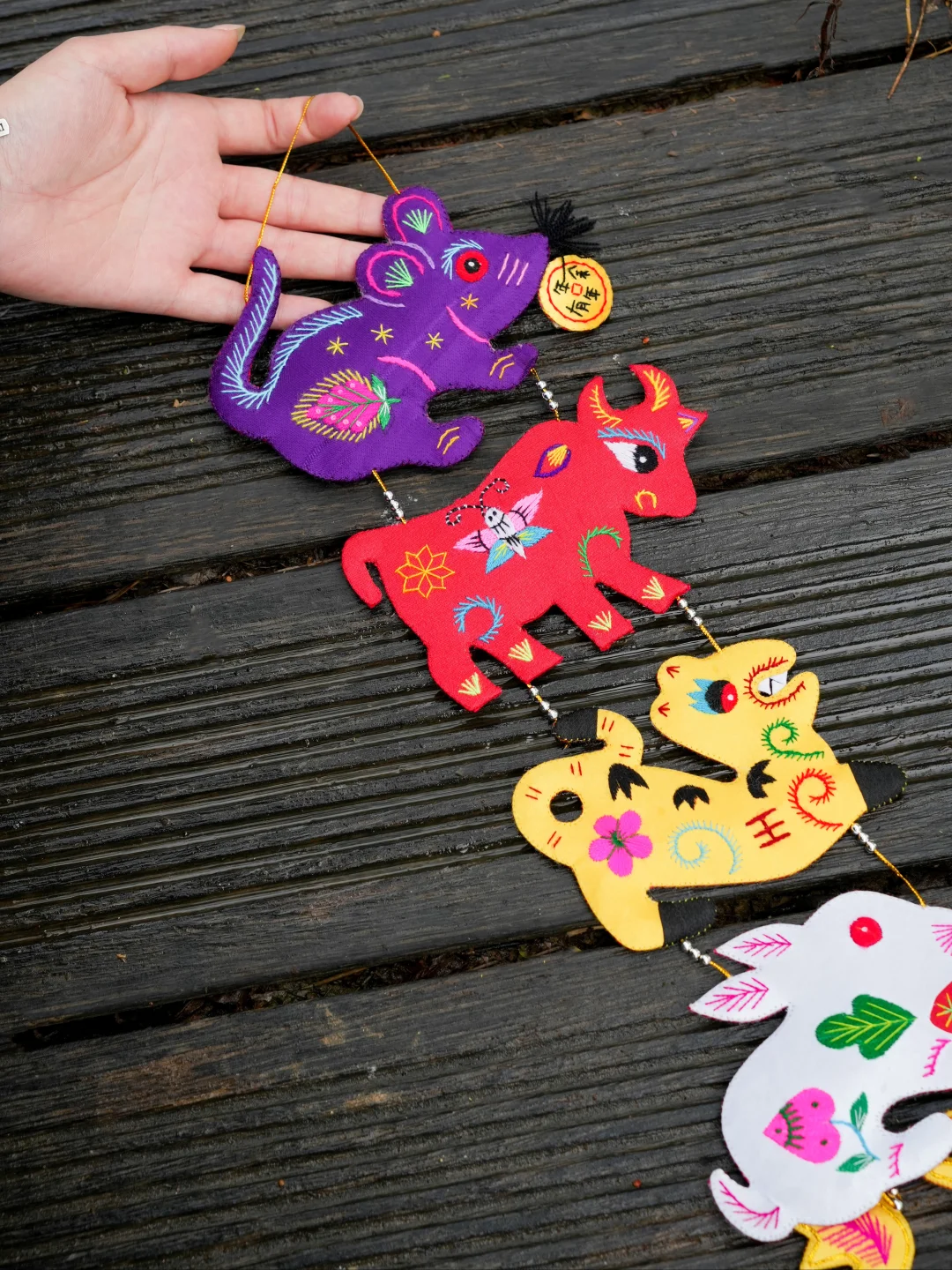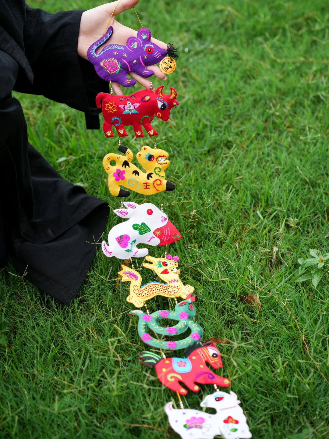 它是快要在市场上消失的物件 来自陕西绣娘手下经典的作品之一 经过半年的打磨与改进 终于上线~ 艺术源于生活 在这串刺绣细节上体现得特别明显 绣娘们不是简单绣出动物轮廓 动物与植物共生 蝴蝶、花草... 相较于冰冷的机器 它是充满生机的手作之物 十二生肖轮流守护 放在玄关还是客厅 我想它应该都对这个家 最美好的祝福 送给朋友也是独特的家居礼物