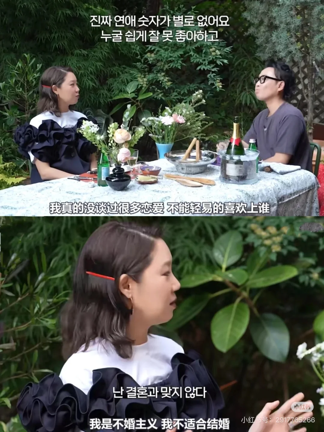 姐最近更新的真是频繁,今日晒照,虽未说啥,但是评论都在恭祝她怀孕,不过看这个照片角度,确实……😂😂! 前两天还刷到她的访问,她说自己是不婚主义,她妈妈也说无儿无女就是福,会支持她想要的,结果遇到考公Kevin后,想法完全变了[笑哭R],真是应了那句网络热梗,不是不婚主义,也不是必婚主义,而是幸福主义! 孔孝真 (访问截图见水印,实在找不到原视频了)