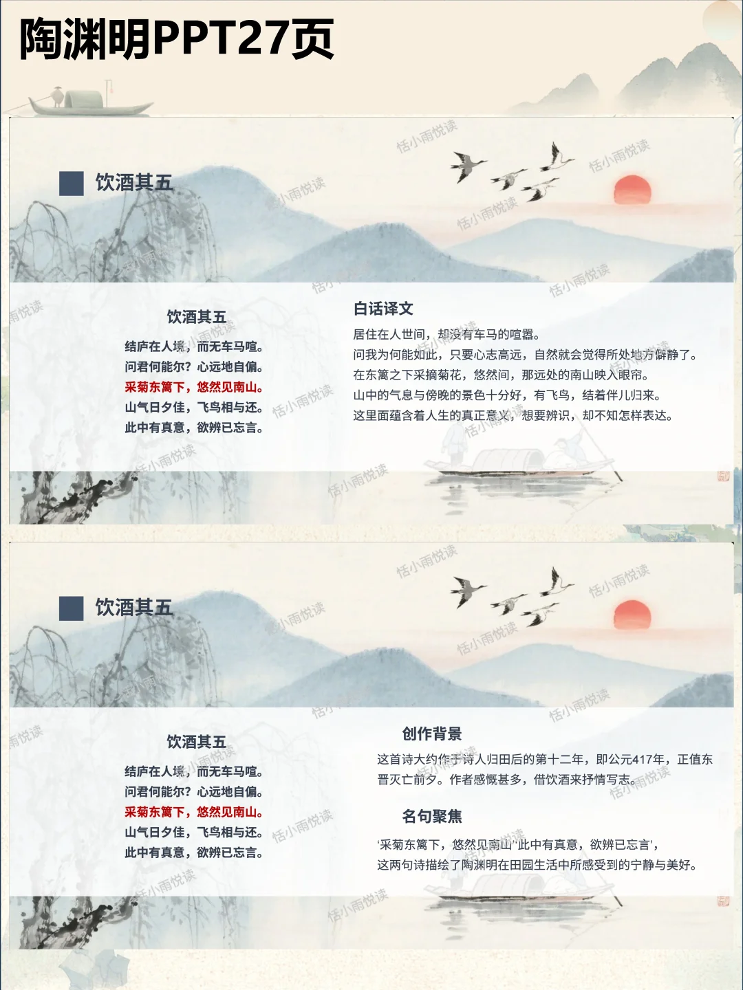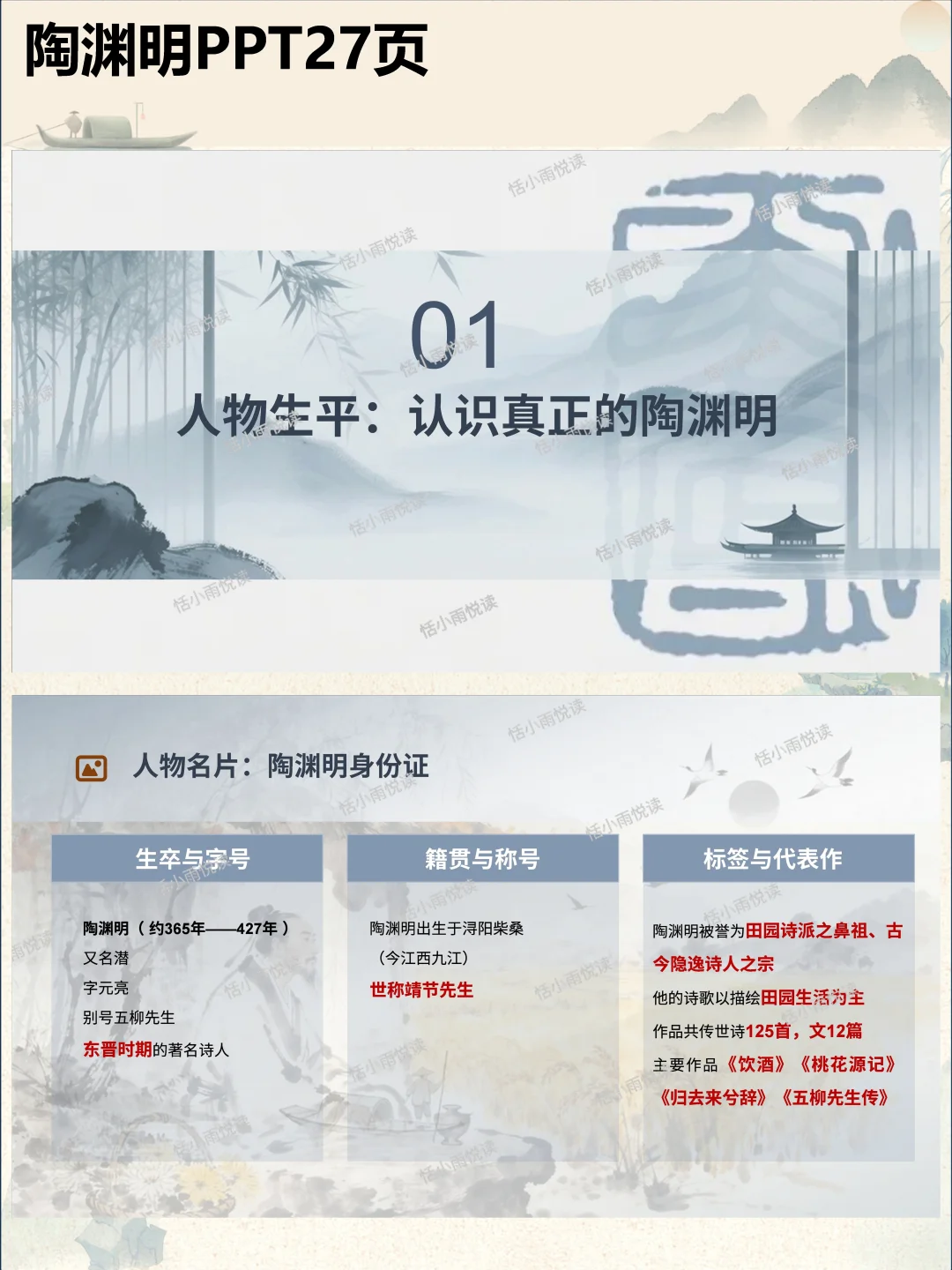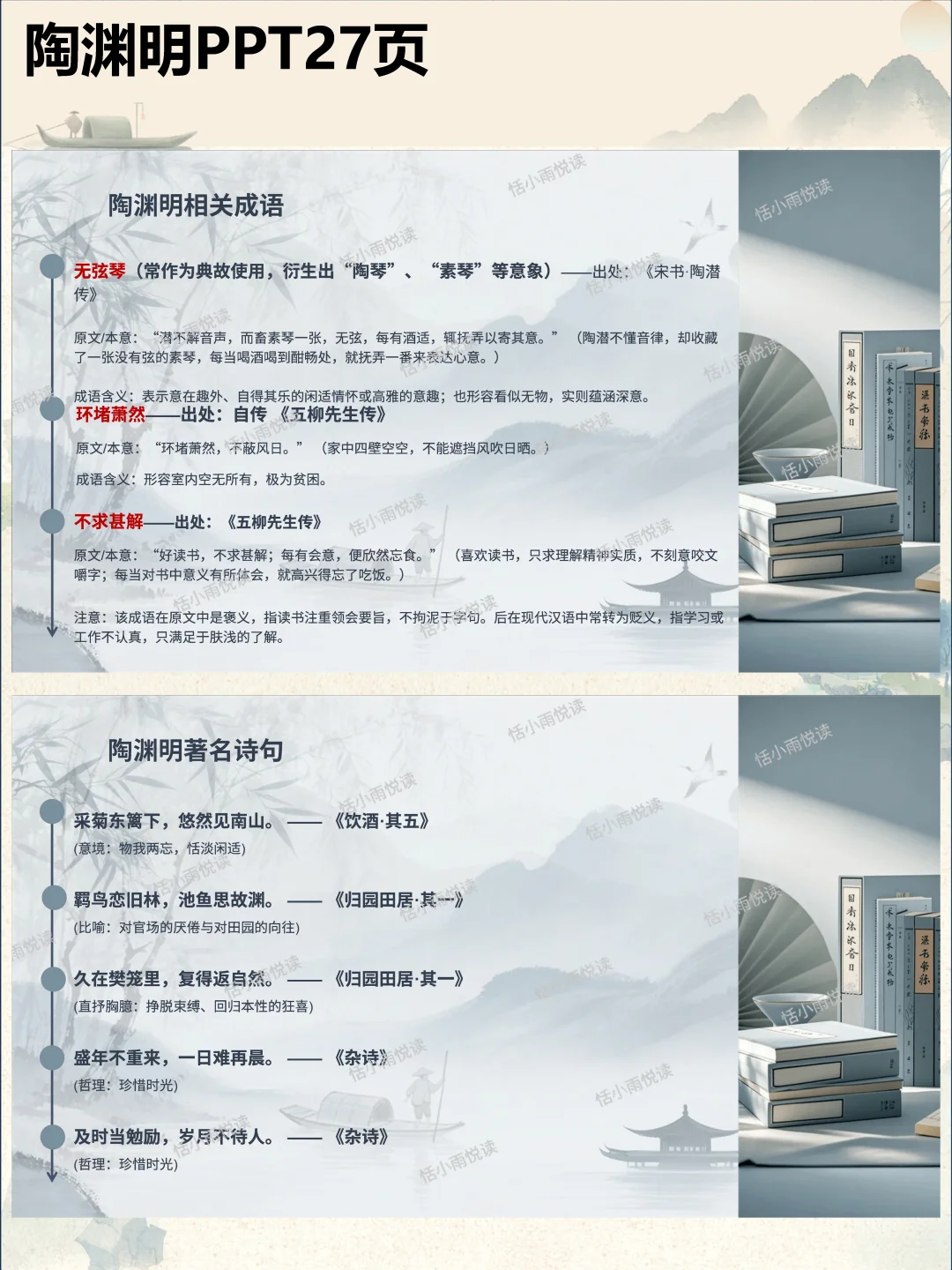 我整理了27页《陶渊明》PPT,一起来读陶渊明。