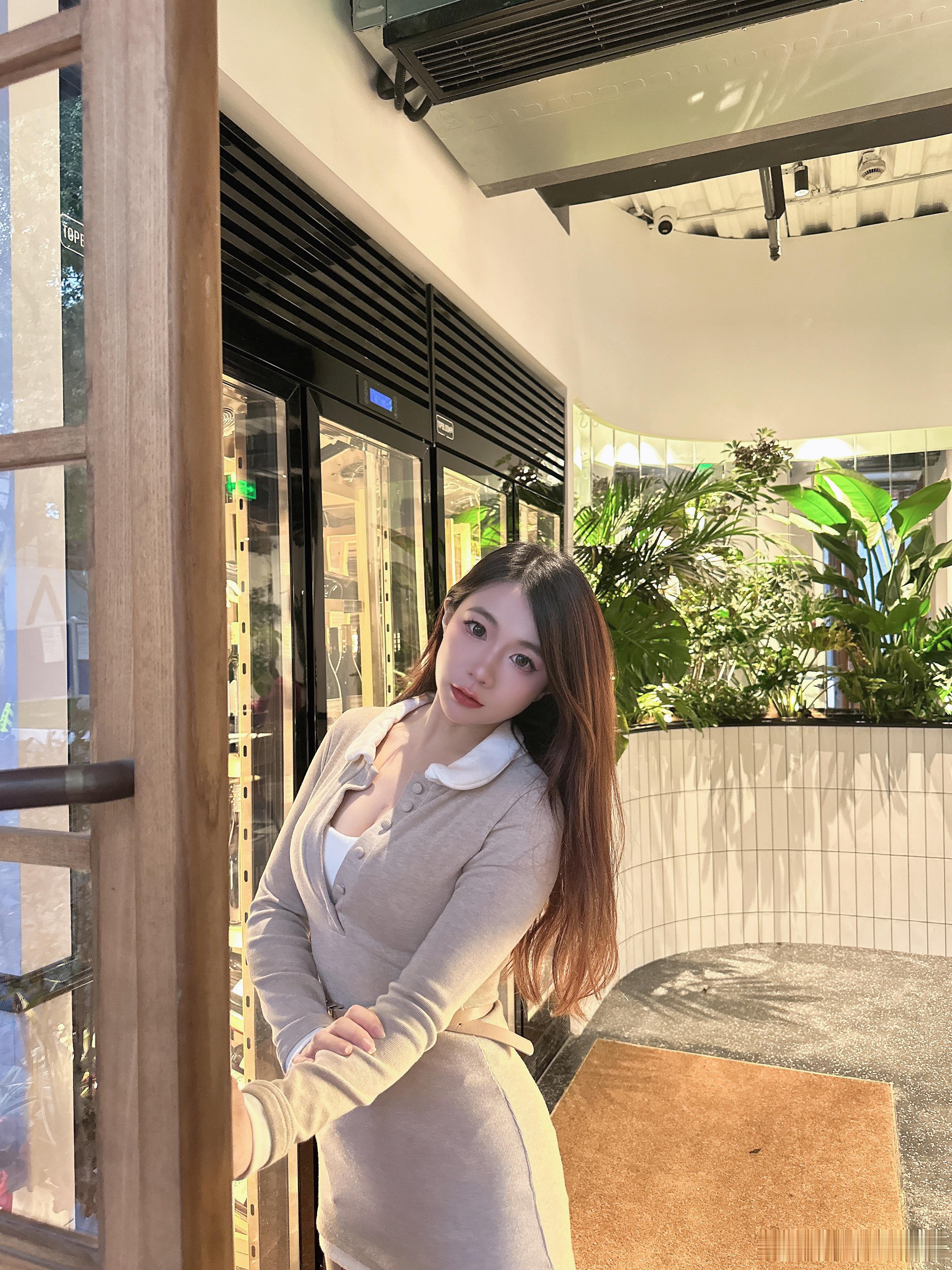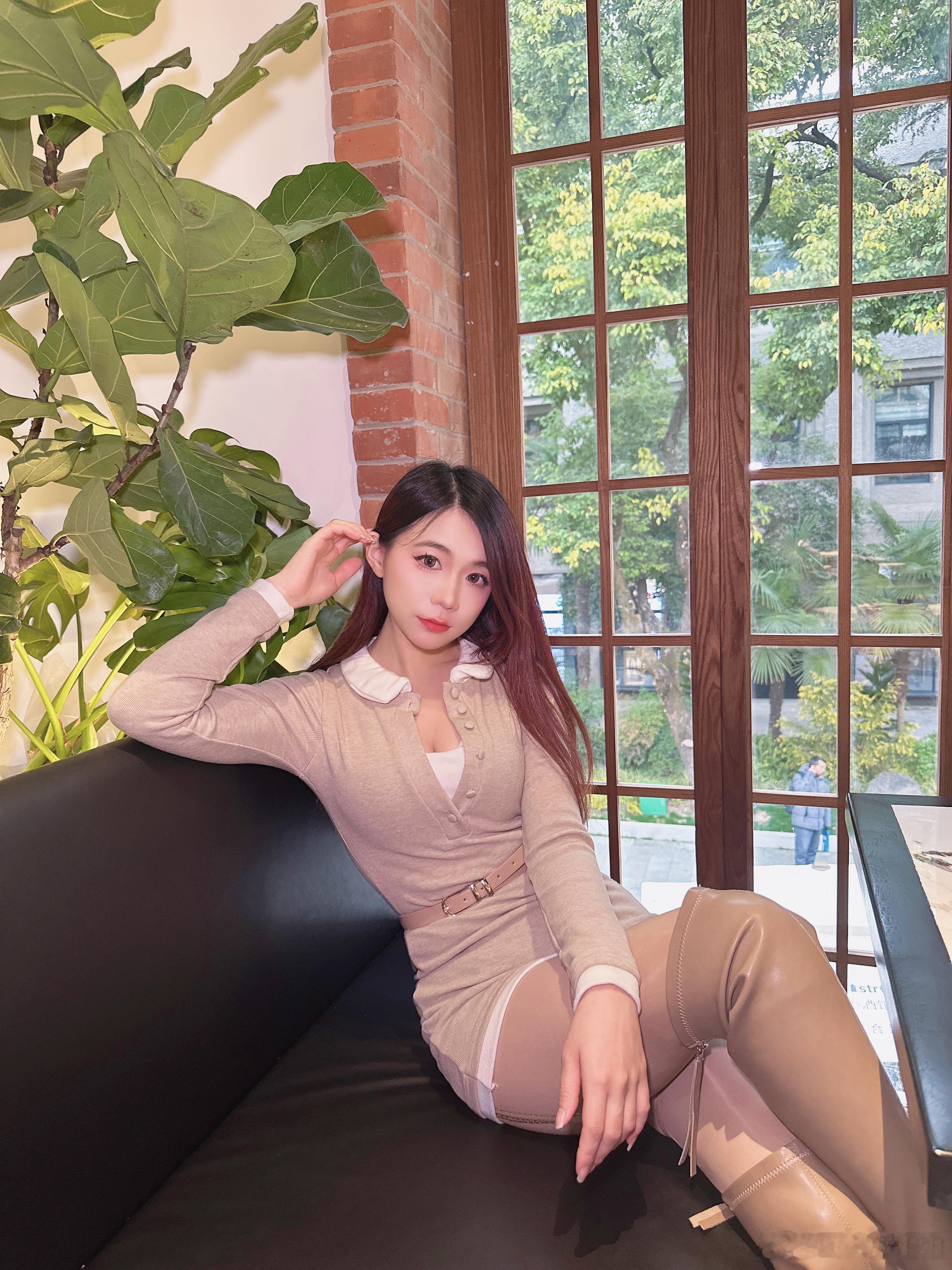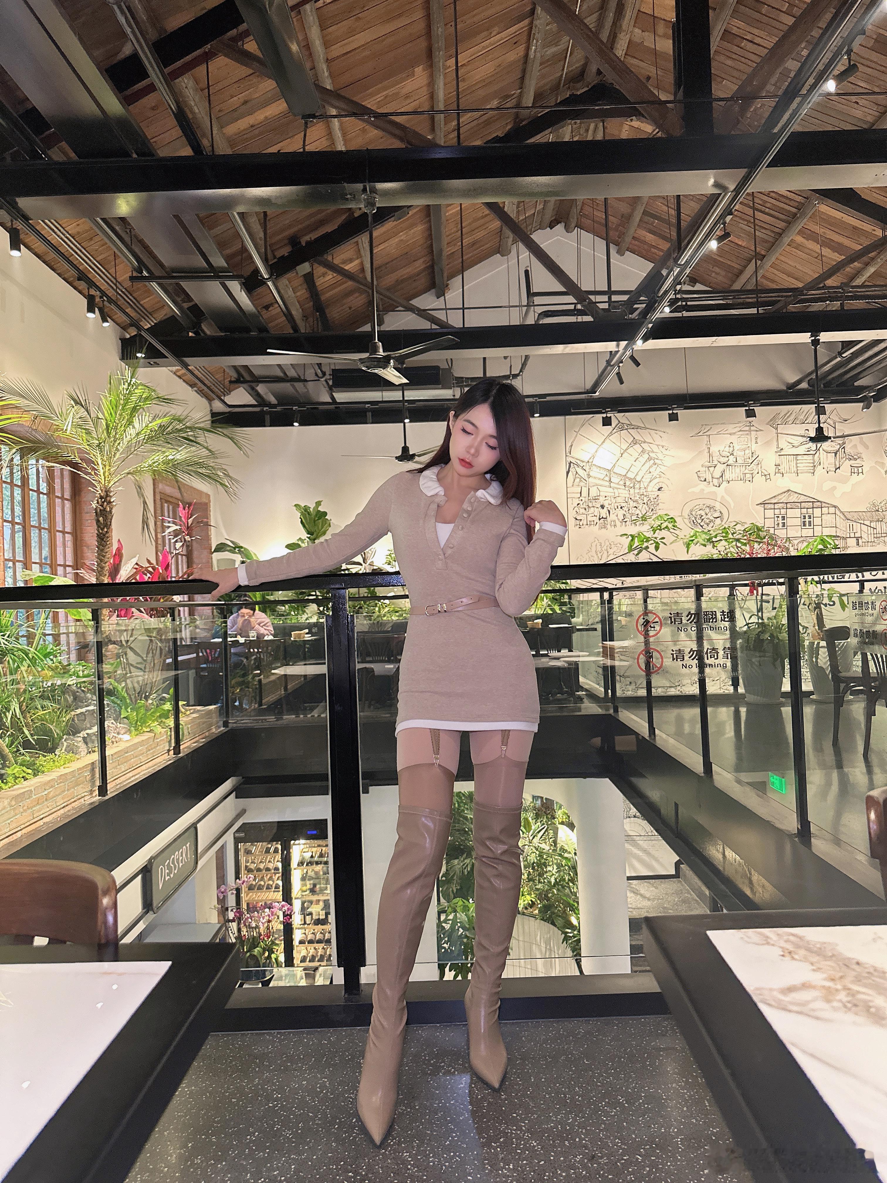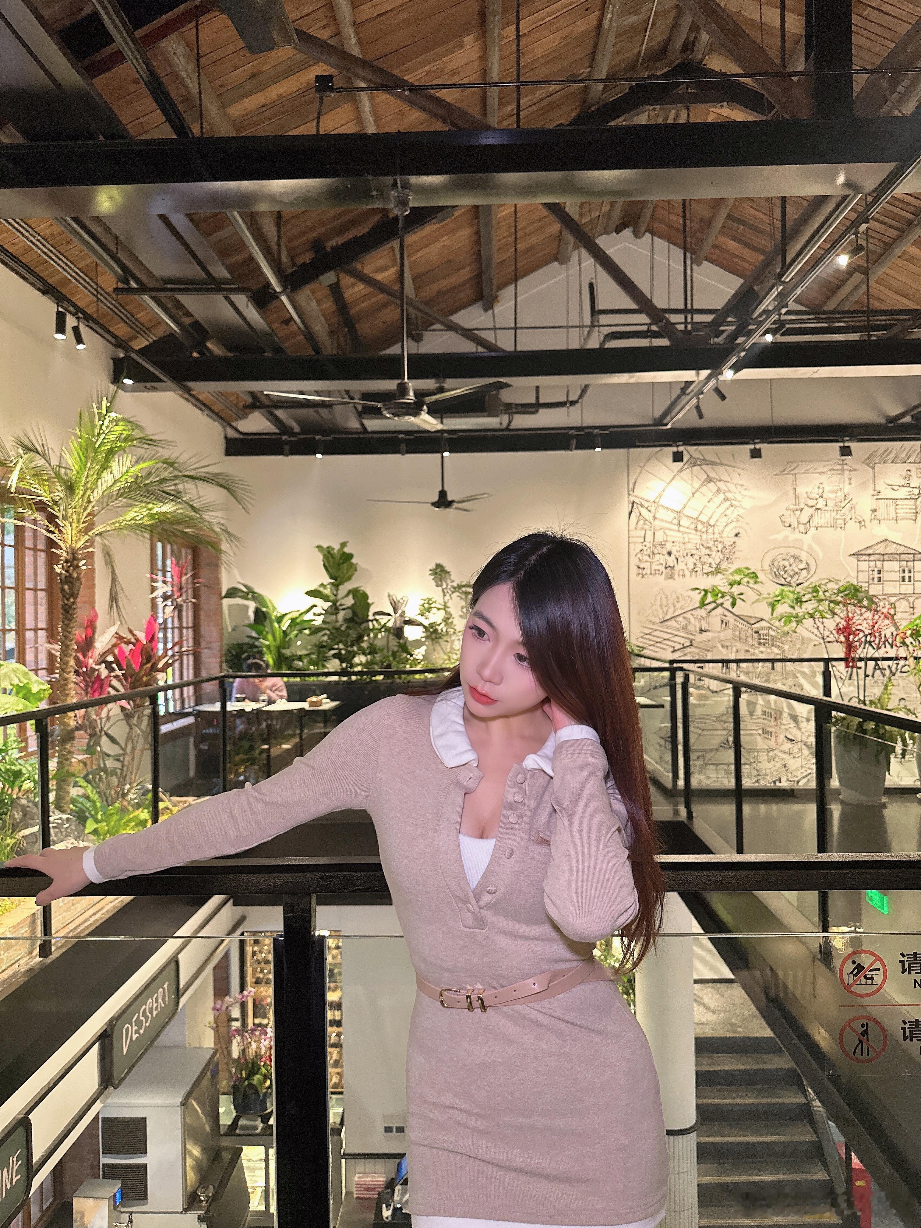 卡其色吊带长裙,搭配黑色尖头高跟鞋,手拿咖啡漫步街头,简约又不失优雅。
