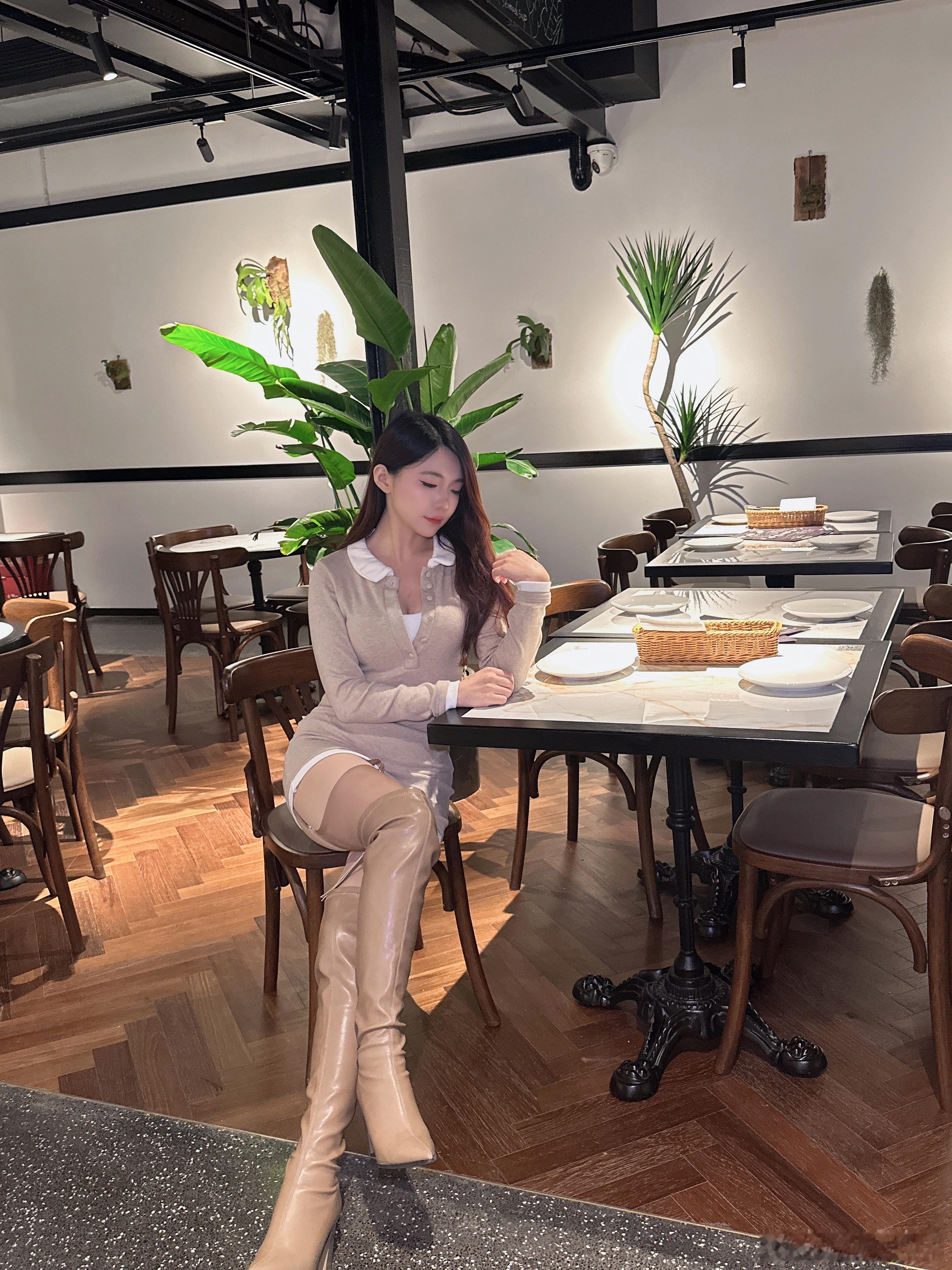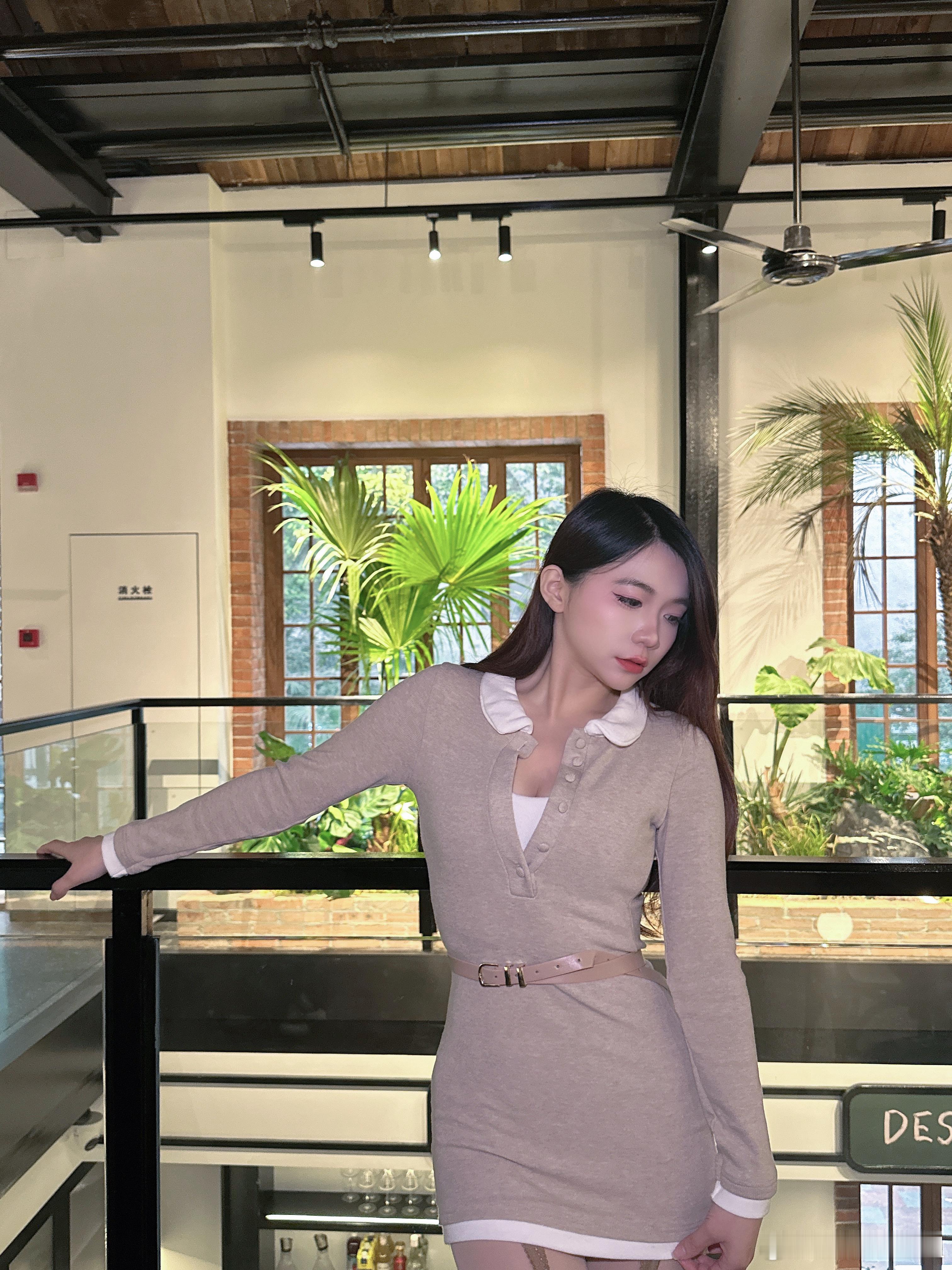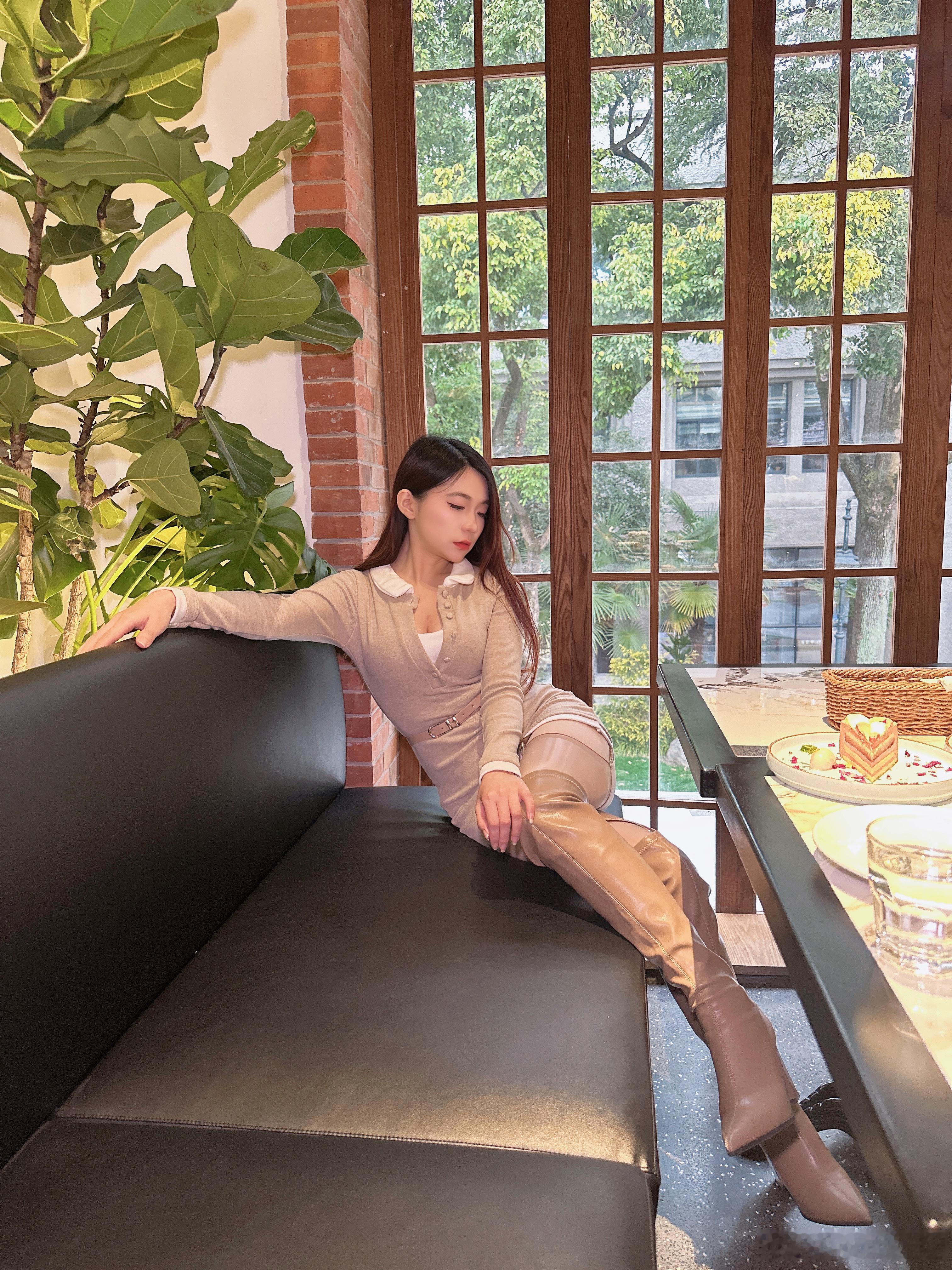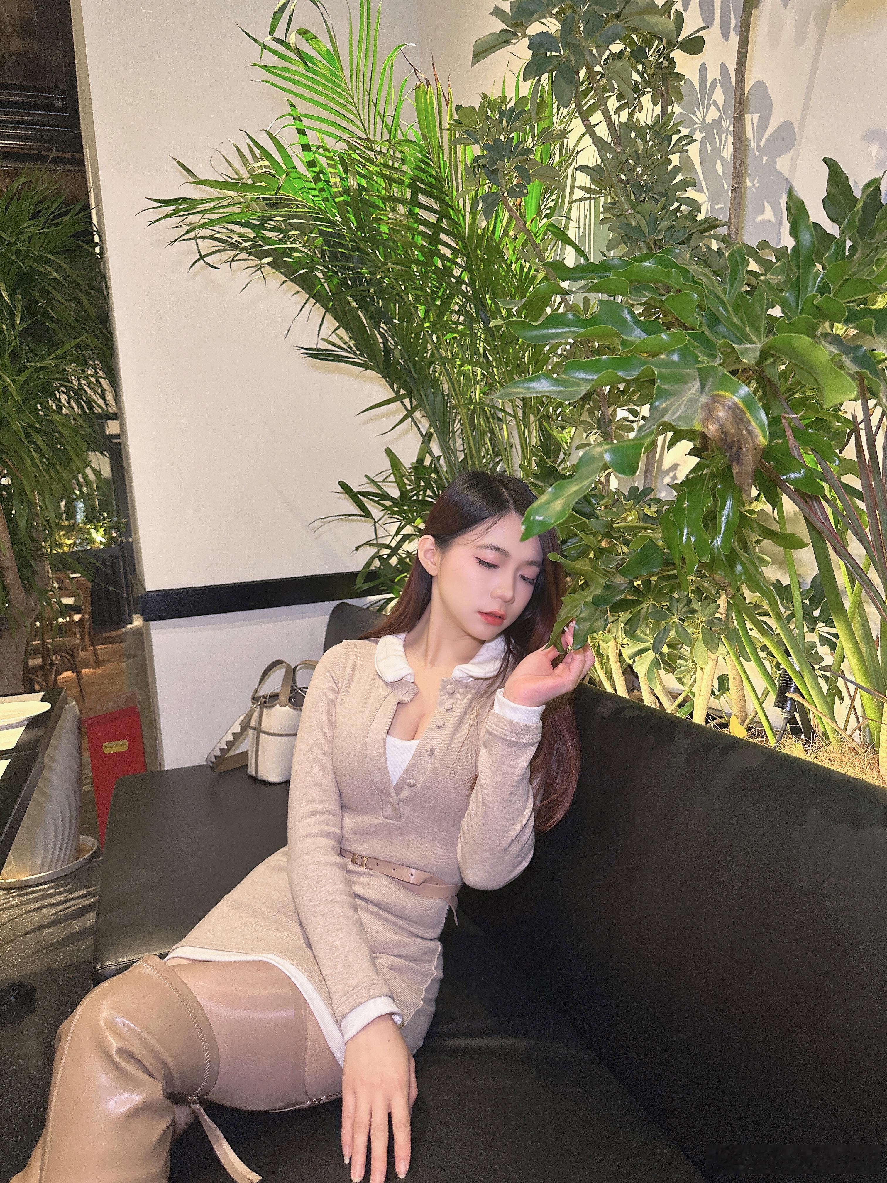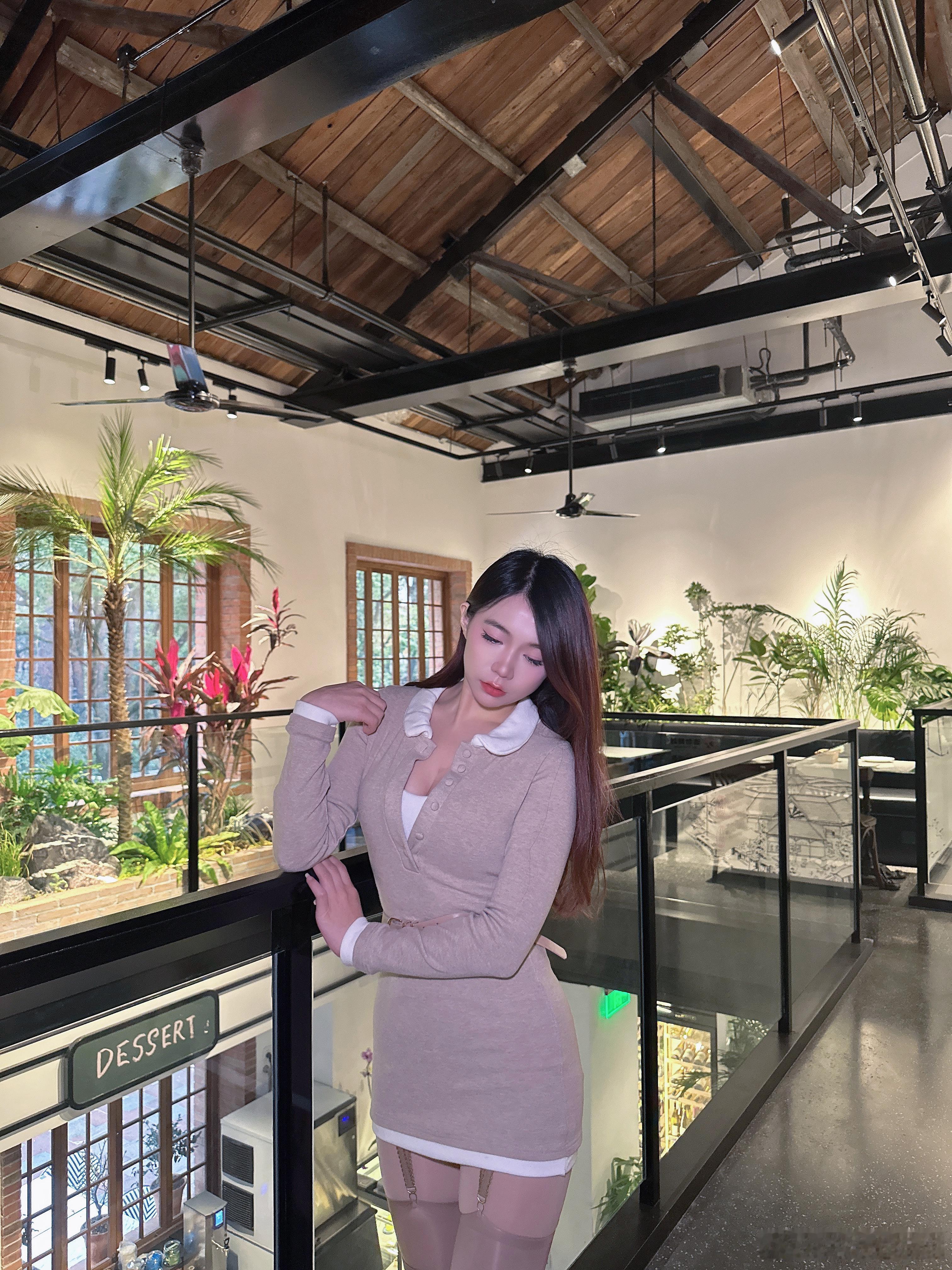 卡其色吊带长裙,搭配黑色尖头高跟鞋,手拿咖啡漫步街头,简约又不失优雅。