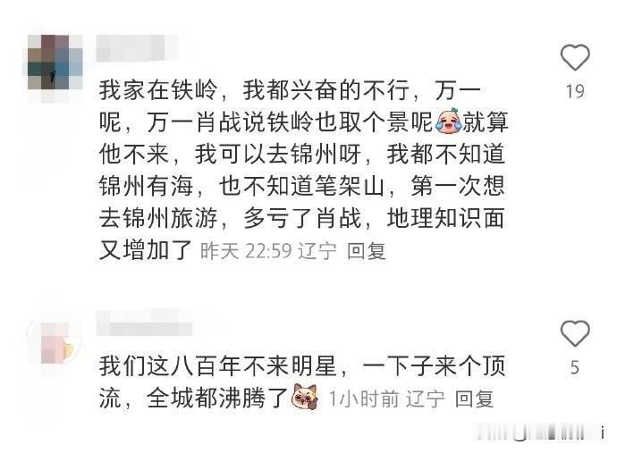 肖战一个人带火一座城名不虚传,这整个锦州的热度都被带起来了,当地文旅,公安,城建,城管官方都在每天花式段子用肖战宣传锦州,全城人的抖音都是肖战的话题,这说明锦州政府也希望自己的城市通过肖战的影响力和热度,抓住这次的机遇和泼天的富贵。 肖战这影响力可以造福当地百姓,谁不喜欢这样的公众人物,连市建都抓紧了,网友开玩笑说怕肖战晚上出门掉坑了,那可就要爆上热搜了,或者肖战拍vlog拍到不好看的地方,那也是分分钟出圈,这肖战已然成了锦州的编外监管员和宣传名片了,难怪重庆文旅那么嫉妒呢[耶]