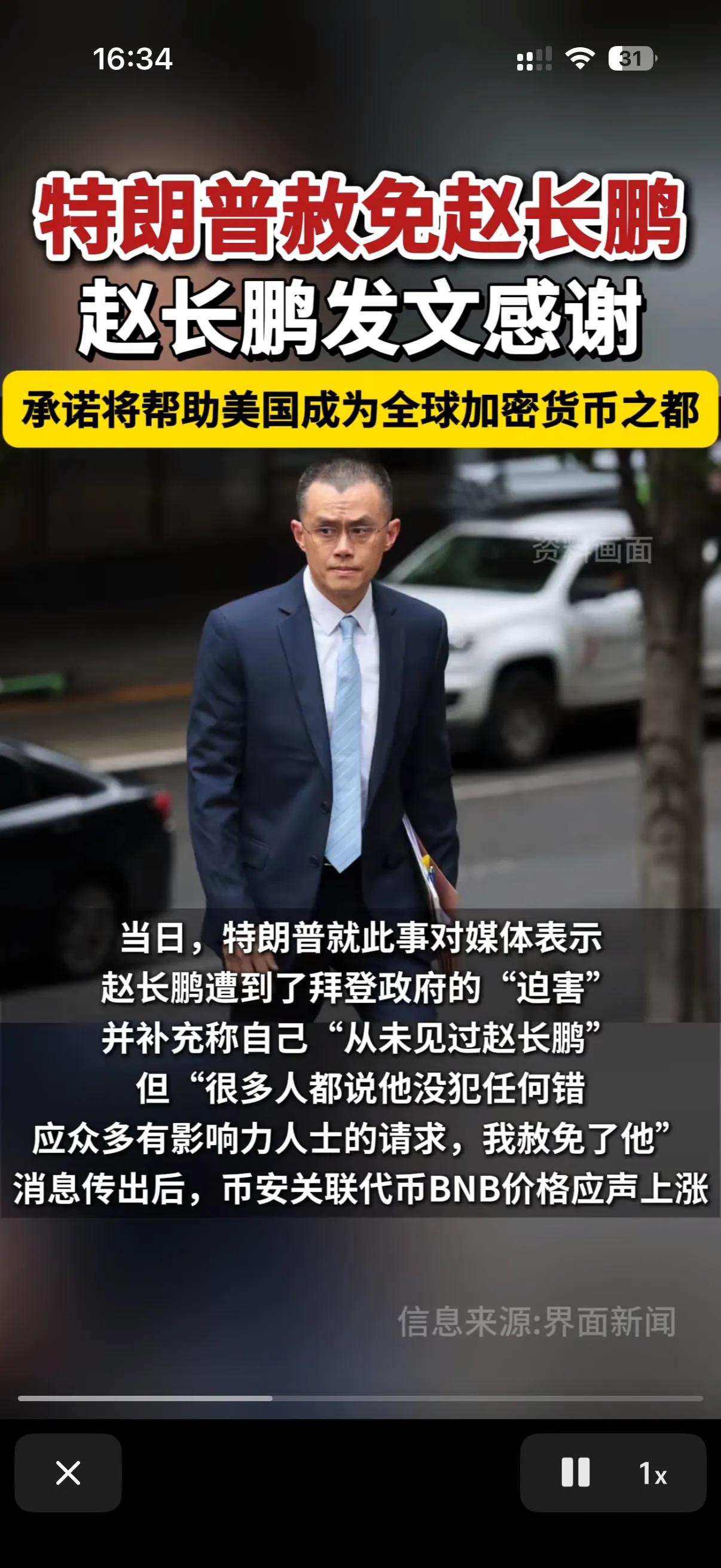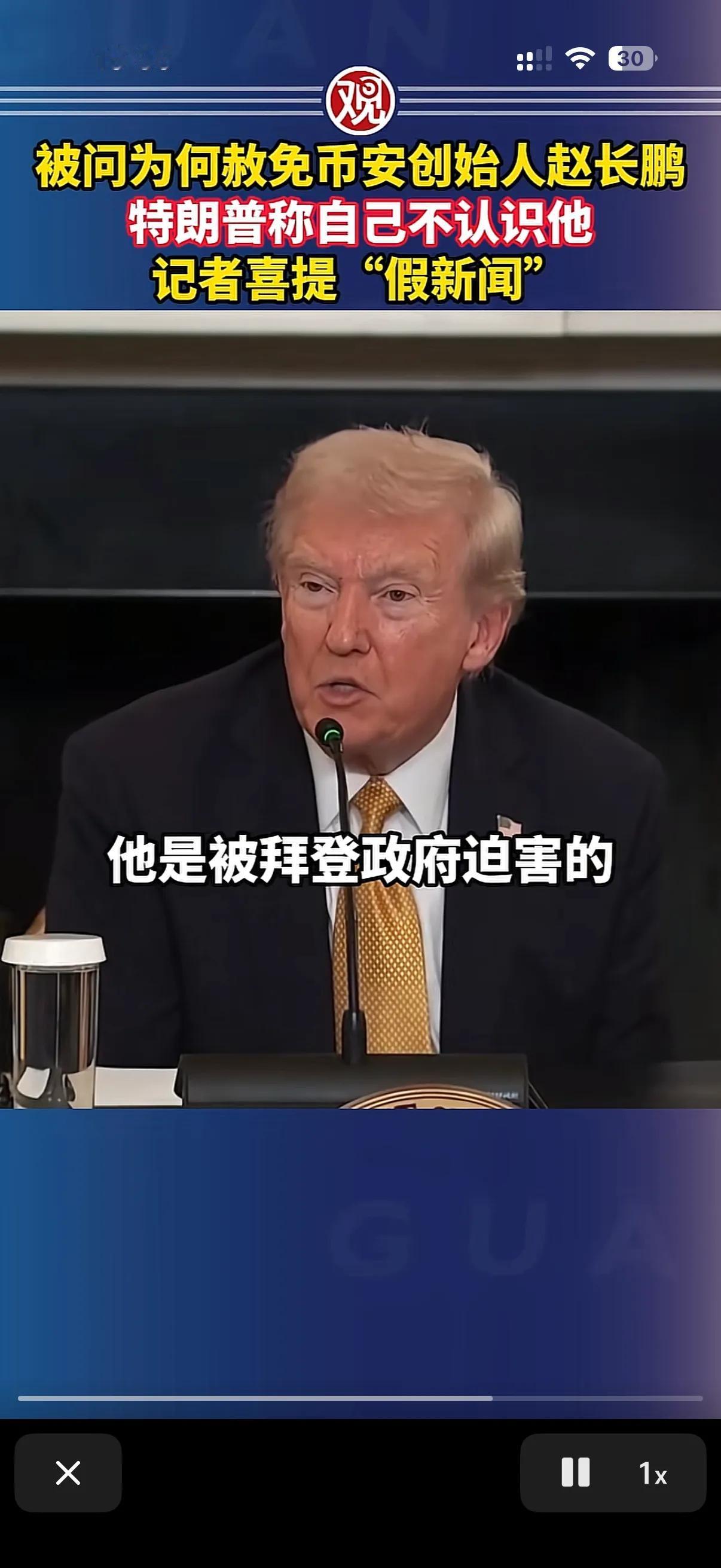 特朗普又行使了自己的总统特权! 特朗普赦免了赵长鹏,就是加密货币交易币安创始人! 在前几年,拜登执政期间赵长鹏被美国政府起诉,赵长鹏认罪服刑四个月! 最近在记者采访期间问特朗普为什么要赦免赵长鹏? 特朗普随后反问,赵长鹏是谁,我不认识他! 随后记者向特朗普介绍赵长鹏被起诉服刑! 随后特朗普反驳记者,称记者就是个假记者,赵长鹏是被拜登政府迫害的,他之所以赦免赵长鹏,就是因为赵长鹏没有犯罪,他是个好人! 有媒体爆出,赵长鹏之所以被赦免,其实是因为赵长鹏参与了特朗普家族的加密货币创建和运营! 也算是从龙之臣了!