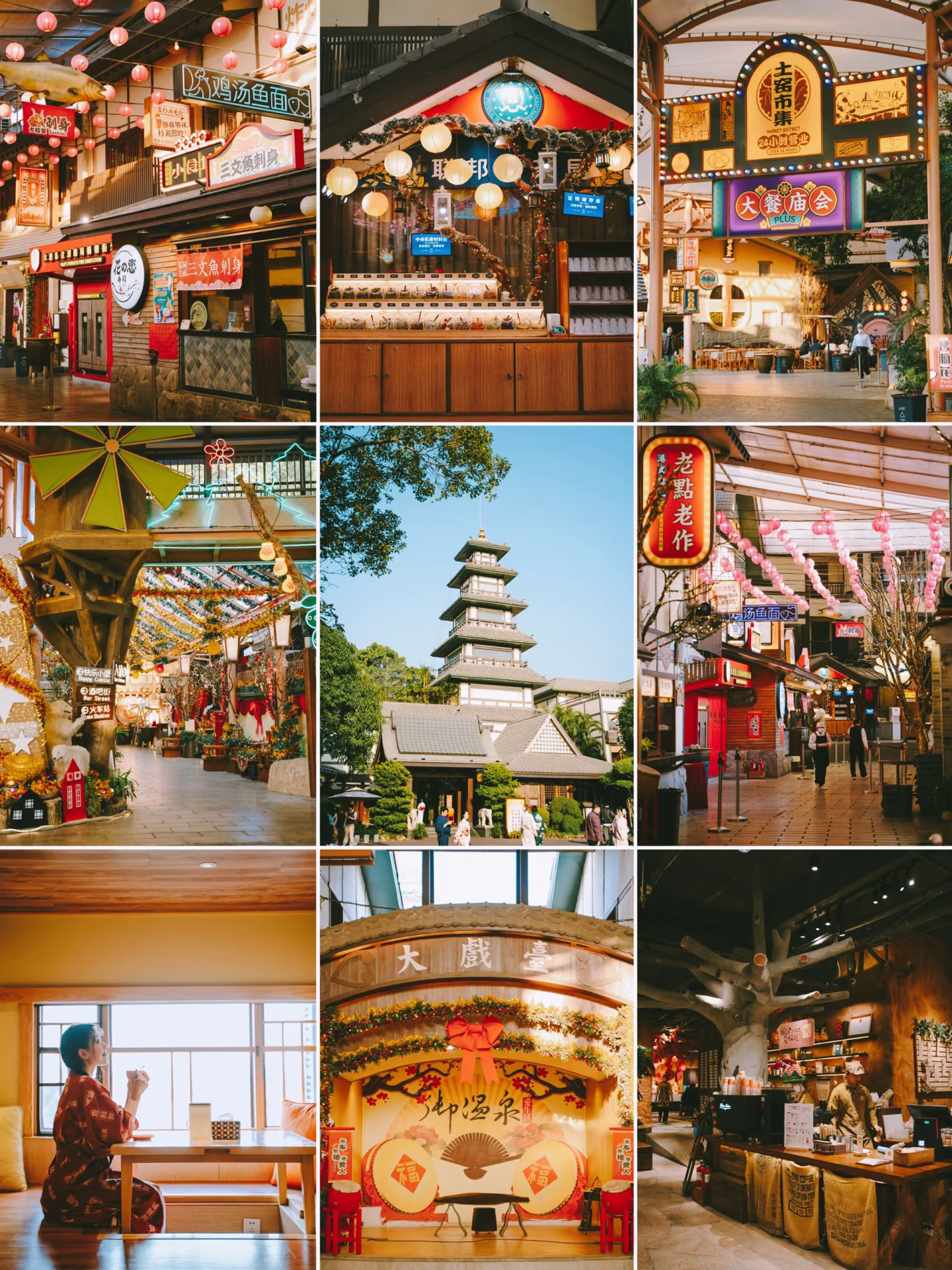 唐风温泉控的姐妹必冲,可租和服拍照+逛大餐庙会(晚上 6 点准时开始),参加各种互动小游戏,再去泡温泉洗去一天的疲惫!