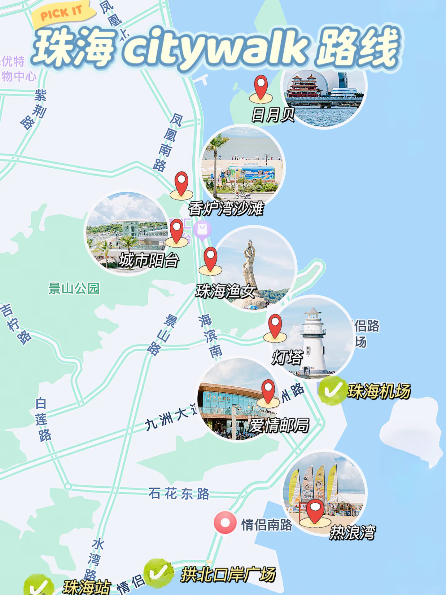 日月贝-城市阳台-香炉湾沙滩-珠海渔女-爱情邮局-情侣路