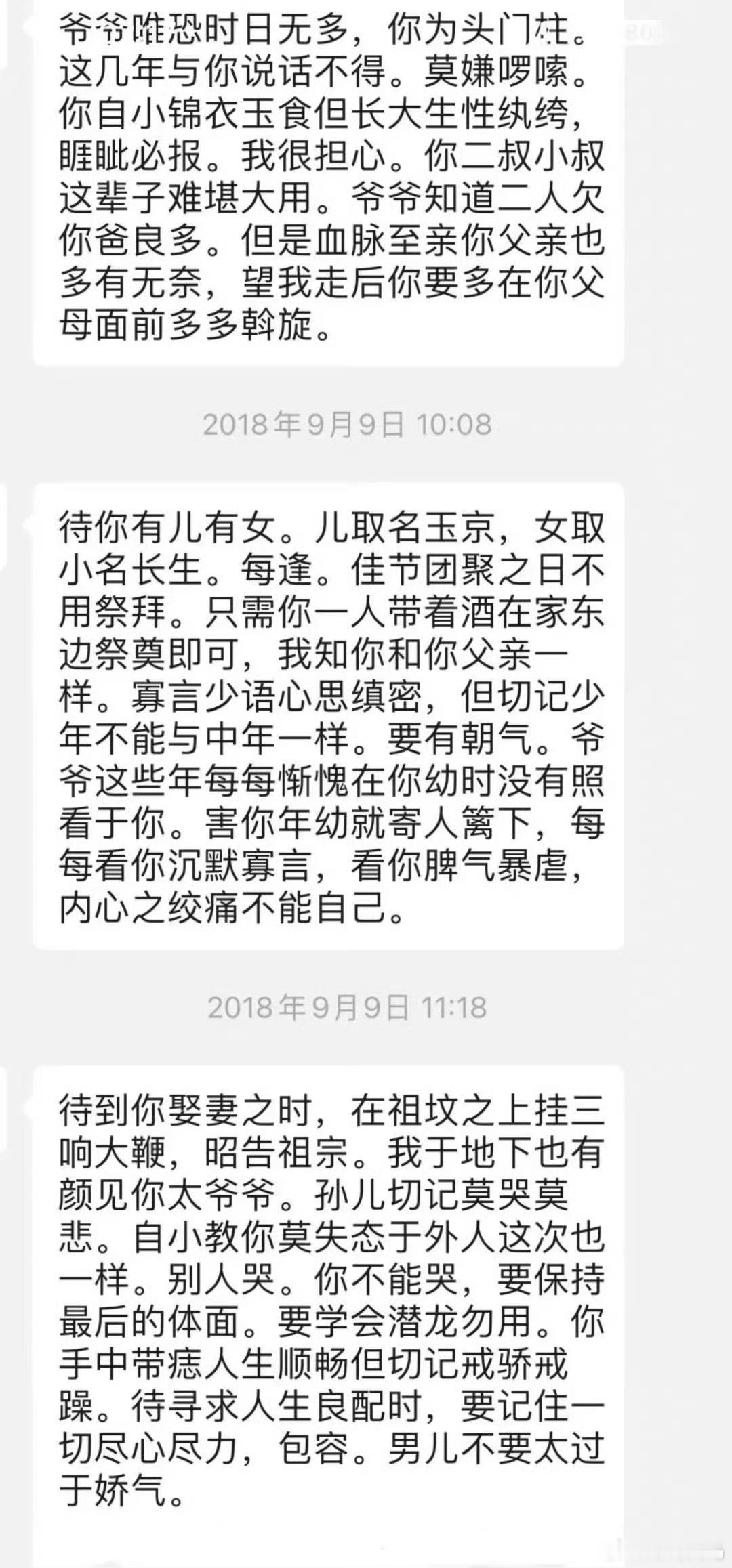 爷爷去世发给孙子的话