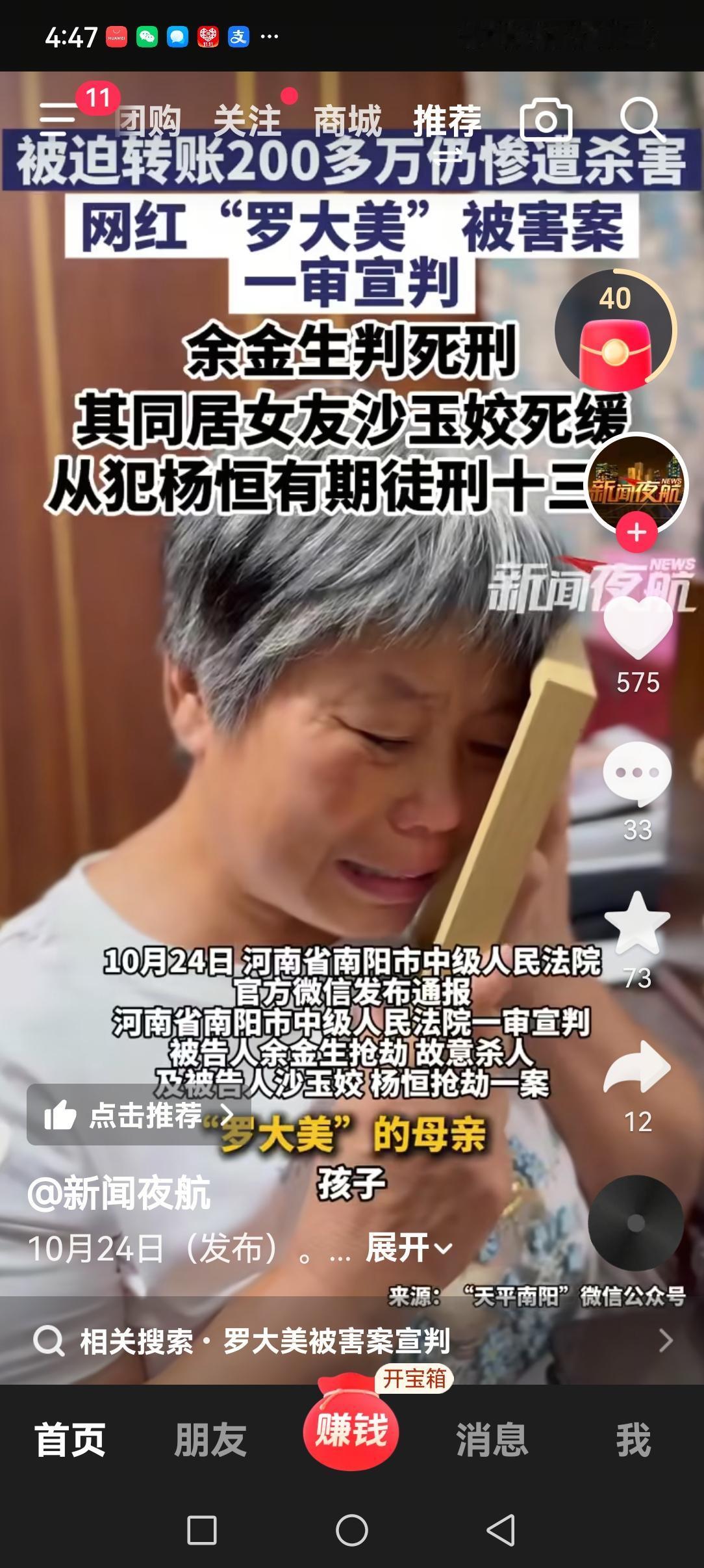 罗大美的案件终于宣判了,他也可以入土为安了! 主谋被判了死刑,他的女友也被判了死缓,从犯杨某被判了有期徒刑十三年。 这样看来,杨某真的没有参与杀害罗大美,事前他也不知道余某会对罗大美下手。 不然怎么可能会为了区区几百块钱,就把信任自己的朋友置于死地呢? 如果不是因为他,罗大美就不可能会死。 明明知道他们找罗大美不是什么好事,为点蝇头小利把他约出来,还以为自己不参与就没有事。被判十三年,真的是一点都不冤,在里面反思去吧! 罗大美的邻居讲述了,他对罗大美的印象。说的他是个很善良的孩子,自己生病在郑州医院住了四十多天,罗大美知道,拿了慰问金去医院看自己。 在亲戚,朋友,邻居的眼中,罗大美都是一个有礼貌,很善良的一个人 ,谁有困难他都愿意伸出援手帮一把。 可能也是因为他的善良,让自己的钱财外露,才为自己带来了祸端吧! 有知情人透露,杀害罗大美的凶手,以前就敲诈过罗大美的钱财。但善良的罗大美选择了放他一马,没有报警,才让凶手有了可乘之机! 最伤心的莫过于他的父母了,凶手虽然被绳之以法了,但他们的儿子却再也回不来!