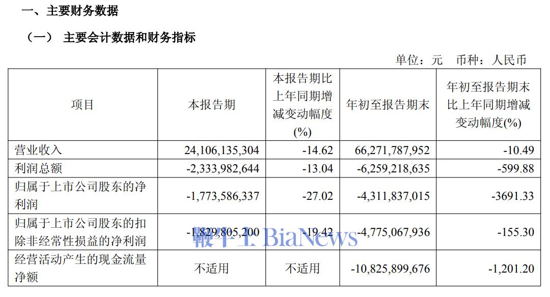 另外,广汽集团今年前三季度营业收入为662.72亿元,同比下降10.49%;归属于上市公司股东的净利润为-43.12亿元,同比下降3691.33%;归属于上市公司股东的扣除非经常性损益的净利润为-47.75亿元,同比下降155.30%。