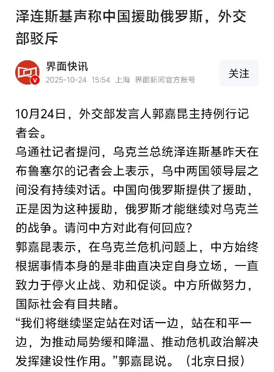 急死了?急死了! 泽连斯基这是又犯毛病了? 打不过俄罗斯,老是找理由,竟然怪罪到“东大”这边来了? 泽连斯基声称中国援助俄罗斯,外交部驳斥 我们天天让你们坐到谈判桌上,你们就是不听。到最后不还是要上谈判桌吗?有本事最好别坐下来谈嘛?[捂脸] 也真是不把乌克兰的老百姓的生命放在眼里,特朗普都说了,这几天又损失了7000多名士兵,也不知道是真的还是假的。 话说回来,要是没有美帝国主义对乌克兰的援助,战争早就结束了吧?