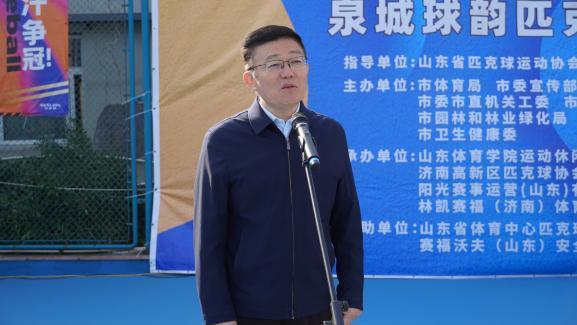 赛事开幕式汇聚了政府、学校、企业等多方代表,充分彰显了社会各界协同推动全民健身、共建体育强国的广泛共识与强大合力。山东体育学院党委委员、副院长、山东省匹克球运动协会会长孙乐为亲临现场并宣布比赛开幕。山东体育学院运动休闲学院院长、山东省匹克球运动协会副秘书长马玉华在致辞中强调,学院将持续发挥学科与人才优势,积极服务全民健身国家战略,助力群众体育事业高质量发展。赛事赞助企业代表赛福沃夫(山东)安全防护用品有限公司也为赛事的顺利举办提供了有力支持。