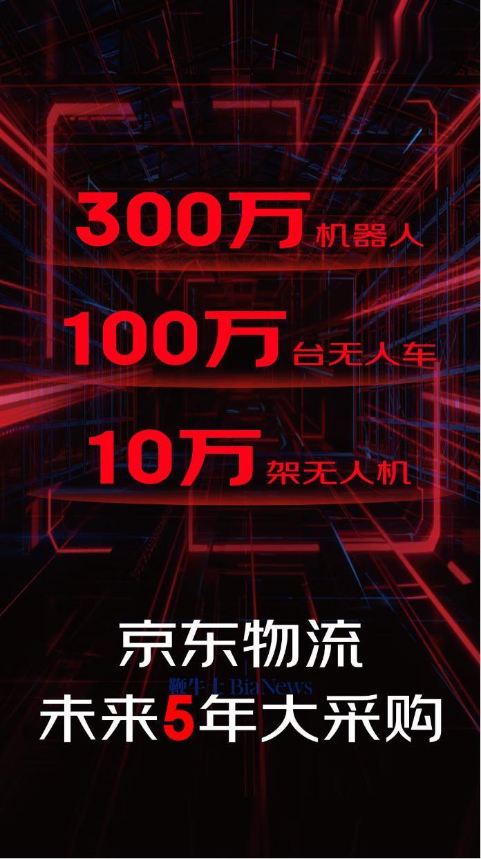 10月24日,京东物流宣布,未来5年要采购300万台机器人、100万台无人车和10万架无人机,全面投入物流供应链全链路场景。