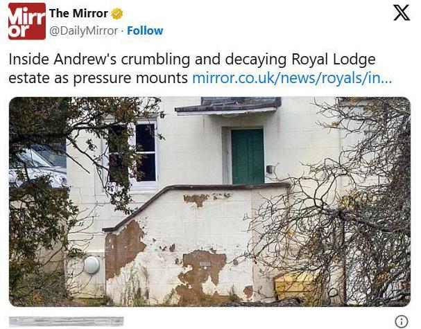 安德鲁王子天价“蜗居”惊变危楼! 最新航拍照片引爆全网:安德鲁王子居住的30居室豪宅外墙惊现巨型裂缝,油漆如蛇皮般剥落,窗框腐烂得像被白蚁啃过。 这哪是女王儿子府邸? 简直是《哈利波特》里被诅咒的尖叫棚屋! 房产专家泰瑞·费舍尔紧急警告:“这房子不是在老化,是在加速崩塌!墙面渗水、结构变形,再不维修就要上演《危楼愚夫》现实版!” 据悉,仅紧急维修就要砸250万人民币,足够买下整条唐宁街的油漆! 让民众炸锅的是账本:这位因爱泼斯坦案被扒光军衔的王子,这些年竟豪掷9000万人民币装修! 其中7500万号称用于“紧急维修”,结果房子还是快塌了。 我花500块通下水道都能管十年,王室装修是往墙里镶钻石吗? 内部人士透露,查尔斯三世早已对弟弟下达“最后通牒”:要么自己掏钱修房,要么滚去弗罗格莫尔小屋和哈里当邻居! 可安德鲁就像长在别墅里的蘑菇——靠着百年租约死活不挪窝。 根源在于,安德鲁2004年签下“魔鬼合约”——租约直到2078年! 65岁的安德鲁,怕是早算过自己活不到那天的账。 如今76岁的查尔斯等不及了,被曝要用“王室房东”特权强制收房。 从无人机拍到的画面看,别墅后院杂草长得能拍《侏罗纪公园》,开裂的墙缝里都能住进知更鸟。 房子和人一样,内在腐朽了外表就会显露。 接下来,查尔斯会不会断水断电逼弟弟搬家?安德鲁会不会开直播众筹修房?哈里梅根会不会从加州发来“贺电”?欢迎在评论区下注! 关注【全球奇趣娱乐八卦】,带你直击王宫崩塌现场下一集! 说不定明天醒来,就能看到安德鲁王子在别墅门口挂出“民宿转让”的牌子呢~ (本文观点综合自房产专家及王室内部人士,维修费用按当前汇率换算)