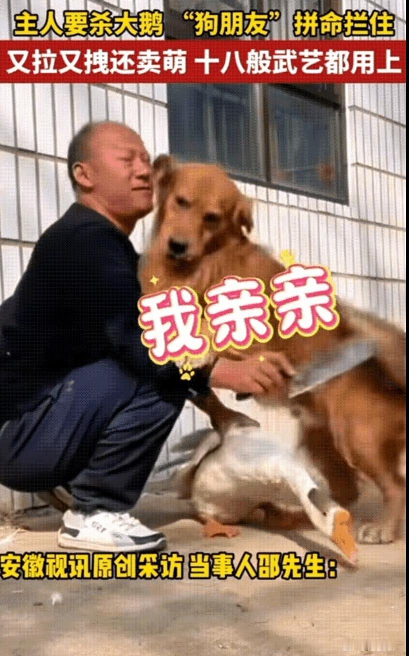 万物皆有灵性! 河南,主人想把自家大鹅杀掉炖着吃,万万没想到的是大鹅同意了,自家的狗子却不愿意了。当主人拿着刀准备杀大鹅时,狗子拼命的阻拦,还给主人撒娇卖萌,又拉又拽还亲亲主人,感觉十八般武艺都用上了,只为求得不杀大鹅之恩。 有网友表示: 这狗太仗义了,主人被狗狗的行为打动,不杀鹅是尊重生命的表现。 万物有灵,善待生灵,满足狗狗的心愿吧!相信主人也是一个善良的人![祈祷][祈祷][祈祷] 万物皆有灵性,狗狗有情有义[赞][赞][赞]不杀鹅能体现主人善良和有同情心的美好品质。 多么幸运的大鹅, 多有情义的狗狗![赞][赞][赞] 对此,大家怎么看呢?