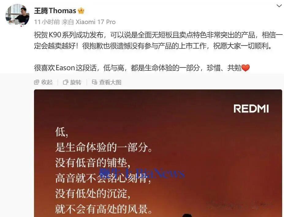 11、王腾祝贺K90系列发布成功:很遗憾没参与产品上市工作