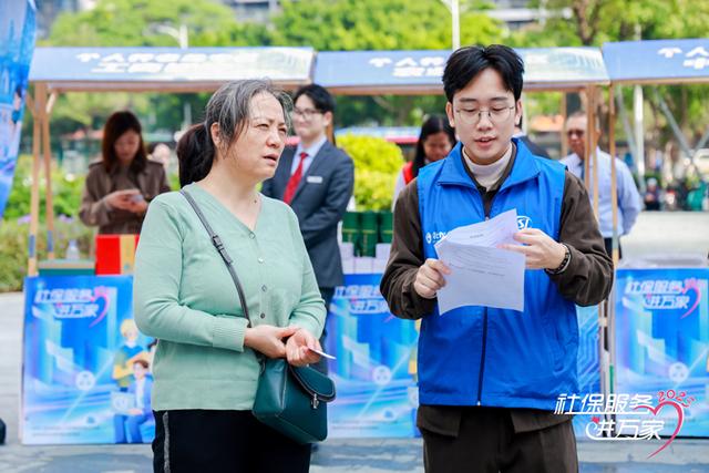 活动当天,全市10区社保经办机构同步开展政策宣传活动,超150名社保工作人员组成“蓝马甲”服务队,深入深圳北站、人民公园、医院、企业园区等人流密集区域,与群众面对面宣传政策、答疑解惑。