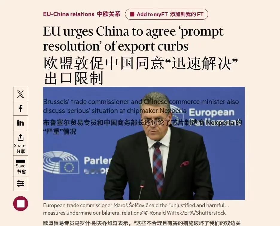 《彭博社》报道,在“安世”事件后,法国希望对华采取报复措施,德国则愿意讨论启动“反胁迫”机制。美国都按不住中国,欧盟那一群不知道自己是小国的小国又意淫了。互不承认知识产权?那可太好了,商业资本会找到购买中国产品的渠道。如果不用遵守知识产权了,那中国发展起来更快,直接把欧美按地上摩擦摩擦。不承认专利?以中国的现有工业水平,不承认专利那能把售价打的比欧盟成本价都低。