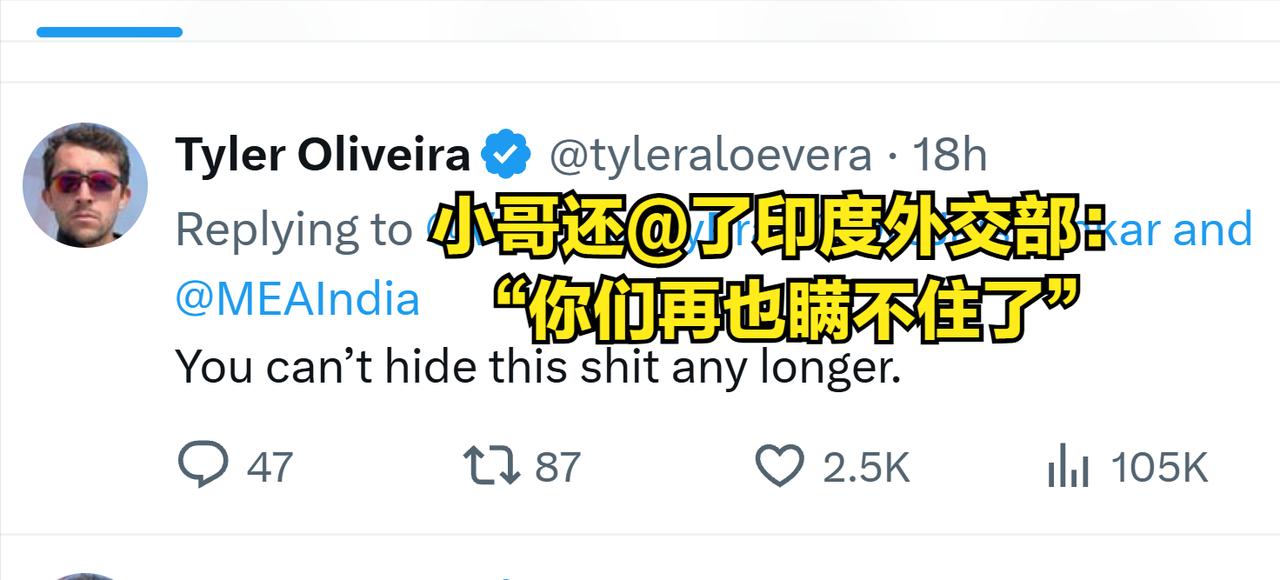 美国猛士小哥冒着被熏s的危险参加印度扔牛粪节,全程直播后在全球引发的风波,已经令全世界分成了两派: 1、印度人: - 疯狂咒骂,要求将他拉进黑名单用不许踏上印度土地(小哥自己也说再也不去了),指责他是抹黑印度应该删除所有拍摄的视频。 2、除印度人之外的所有人: - “原来这是印度” - “给我100万美元我也不会去,这是我见过的最最恶心的东西” - “什么,这竟然不是AI生产的视频?” - 不停贴出屎壳郎推粪球图片 …… 美国小哥今天被印度网友不断围攻后,直接还@印度外交部:“你们再也瞒不住了”。