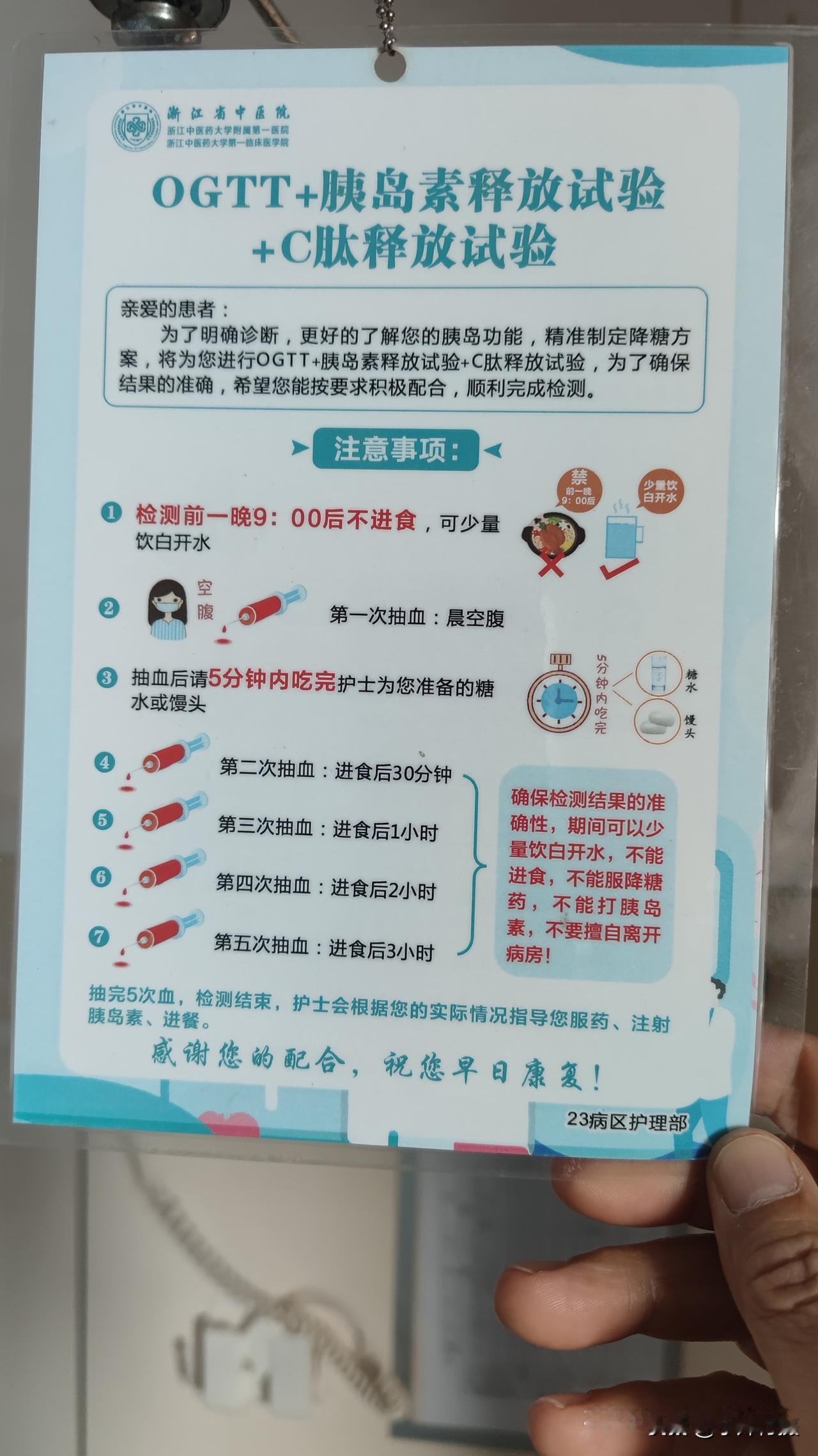 糖尿病看诊直接“爆雷”!专家一句话我当天住院 住院第一天日记 今天总算到了预约省中医院糖尿病科专家号的日子,一大早我就赶过去了。跟医生一五一十说自己的情况,结果医生直接“批评”我:“你这也太不关心自己病情了!这么多年都不做检查,不行,必须住院好好查!” 我当时听得还挺不好意思,也没敢多问,上午就赶紧办了住院手续住进来了。下午直接开启“检查模式”,忙得脚不沾地:先是做超声波,一下查了三项——肾输尿管膀胱前列腺、颈动脉,还有甲状腺加颈部淋巴结,躺检查床上翻来覆去折腾了好一会儿;接着是常规十二导联心电图,身上绑了一堆线,几分钟就完事了;然后是查四肢的神经传导和神经电图,过程中有点酥酥麻麻的,不算难受;最后去做眼科检查,医生看了眼底还说,以后得多盯着眼部情况,毕竟糖尿病容易影响眼睛。 晚饭前护士来测空腹血糖,5.7,这个数还行,我心里稍微松了点。结果饭后两小时再测,直接到11.2,偏高了,一下子又有点紧张。护士还说,晚上和凌晨得过来量好几回血糖,看来今晚是睡不了整觉咯。 刚才护士又来交代明天的事,特意强调明早要空腹查大小便化验,让我今晚睡前就别吃东西、别喝水了,省得影响结果,我赶紧记在手机备忘录里,就怕忘了。另外还说,明天一天要测五次血糖,分别是一早空腹、三顿饭后两小时,还有睡前,感觉明天又是被“扎手指”支配的一天,希望明天的数值能好看点,也盼着所有检查赶紧结束,让医生早点摸清情况。 第一天住院就这么紧凑,希望后面都顺顺利利的,早点弄明白身体到底啥情况。