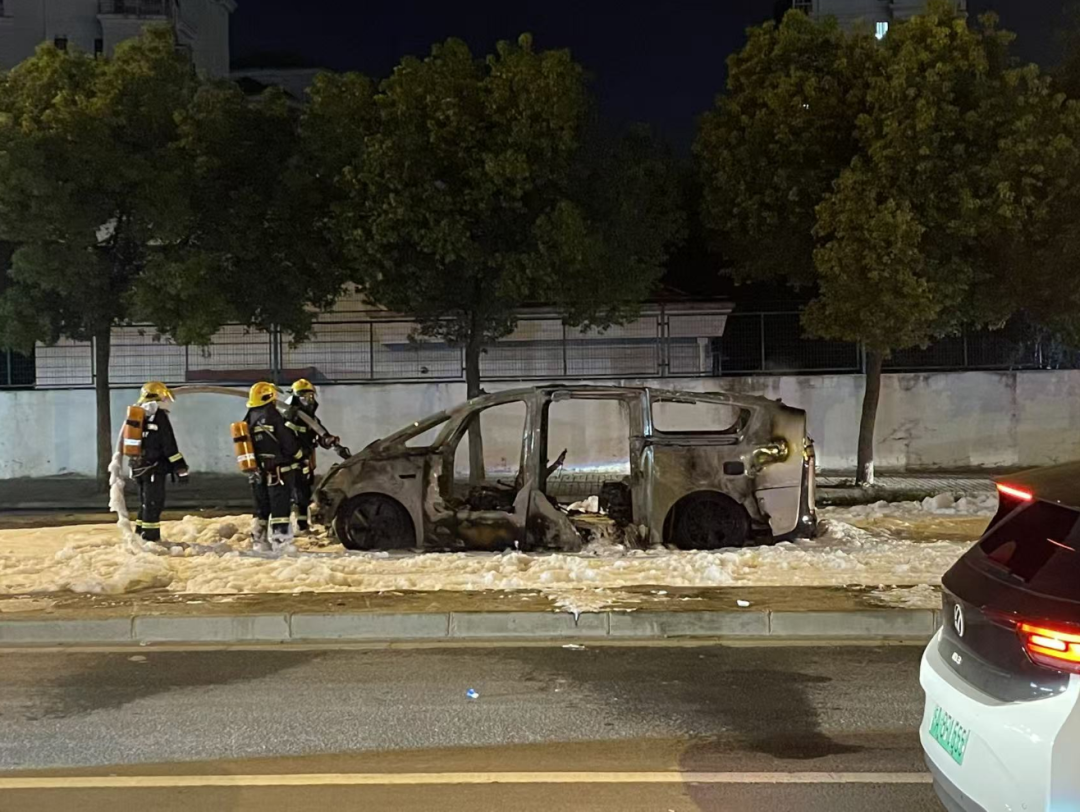 上海消防救援部门接警后迅速调派力量赶赴现场,到场时车辆已处于猛烈燃烧状态。经消防员扑救,火势最终被控制,但车辆已烧成空架。