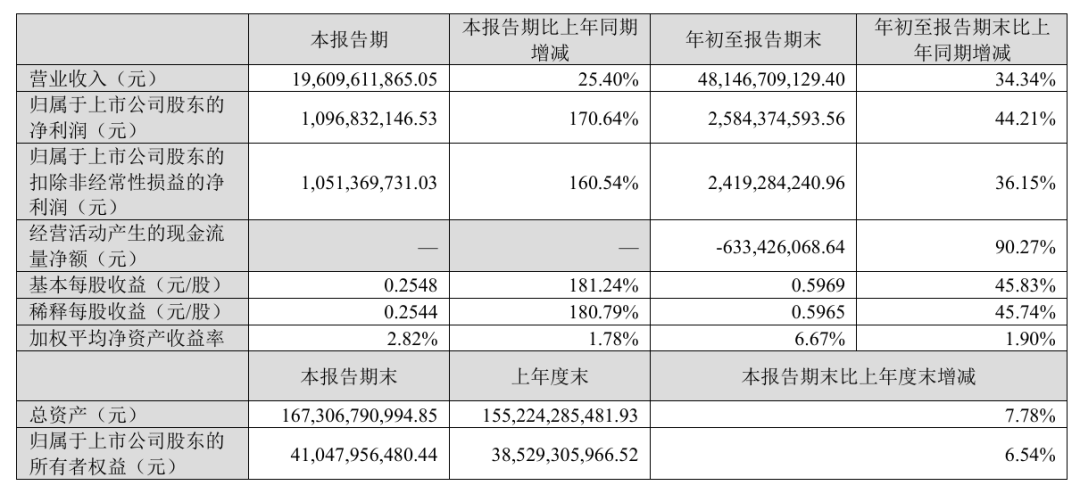 金风科技还披露了第三季度单季度主要财务数据,第三季度实现营收196.1亿元,同比增加25.4%;实现净利10.97亿元,同比增加170.64%。