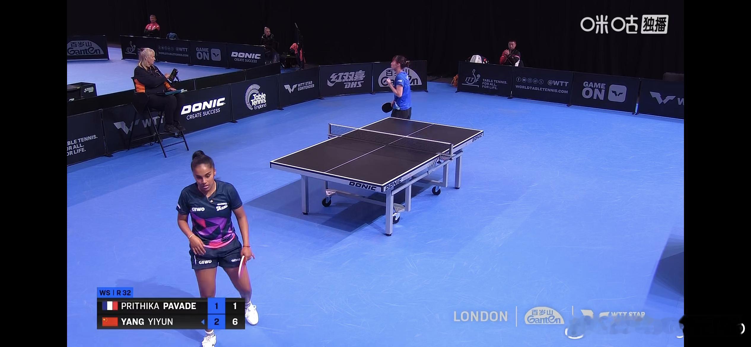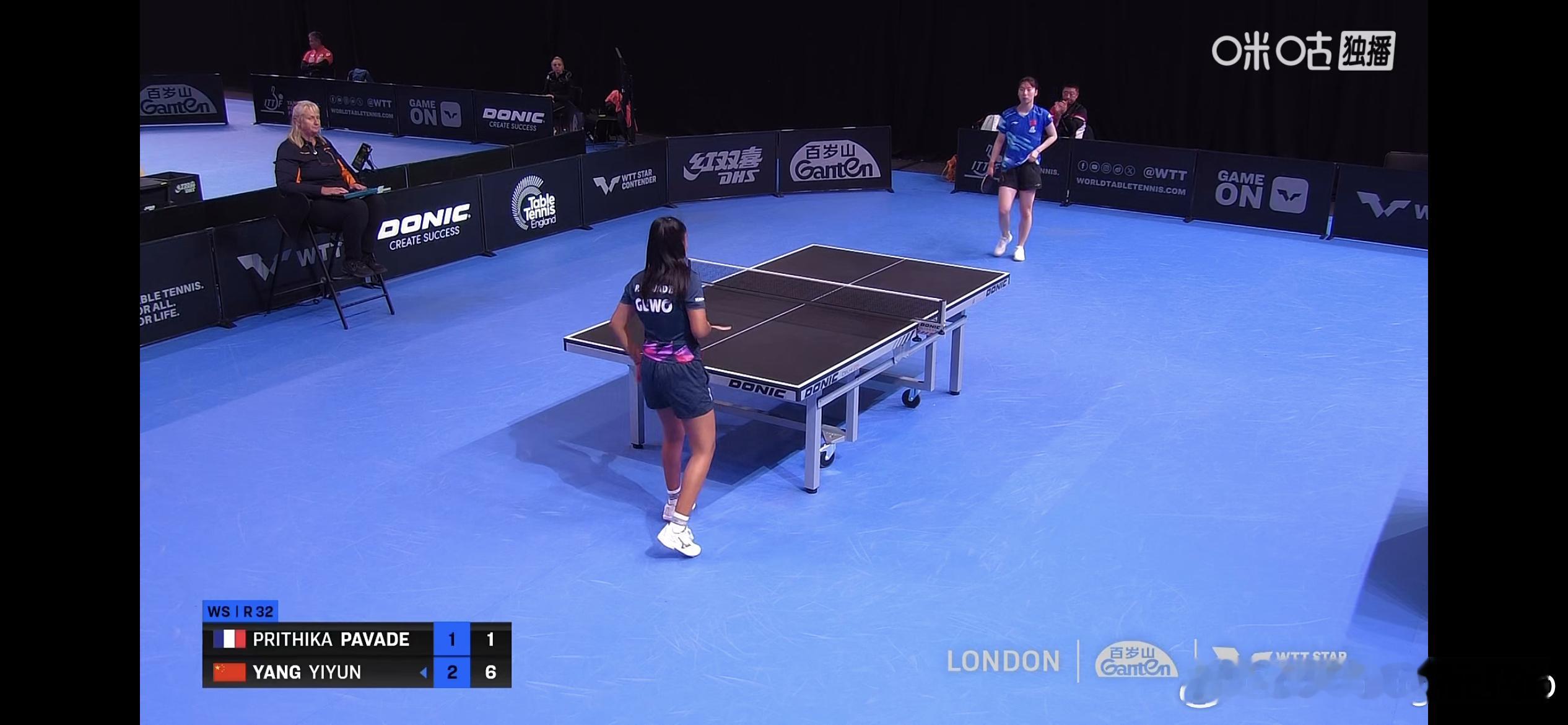 WTT球星挑战赛伦敦站2025 女单1/16决赛:🇨🇳杨屹韵3比1帕瓦德🇫