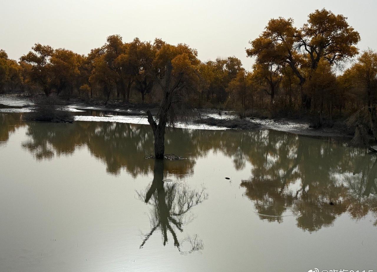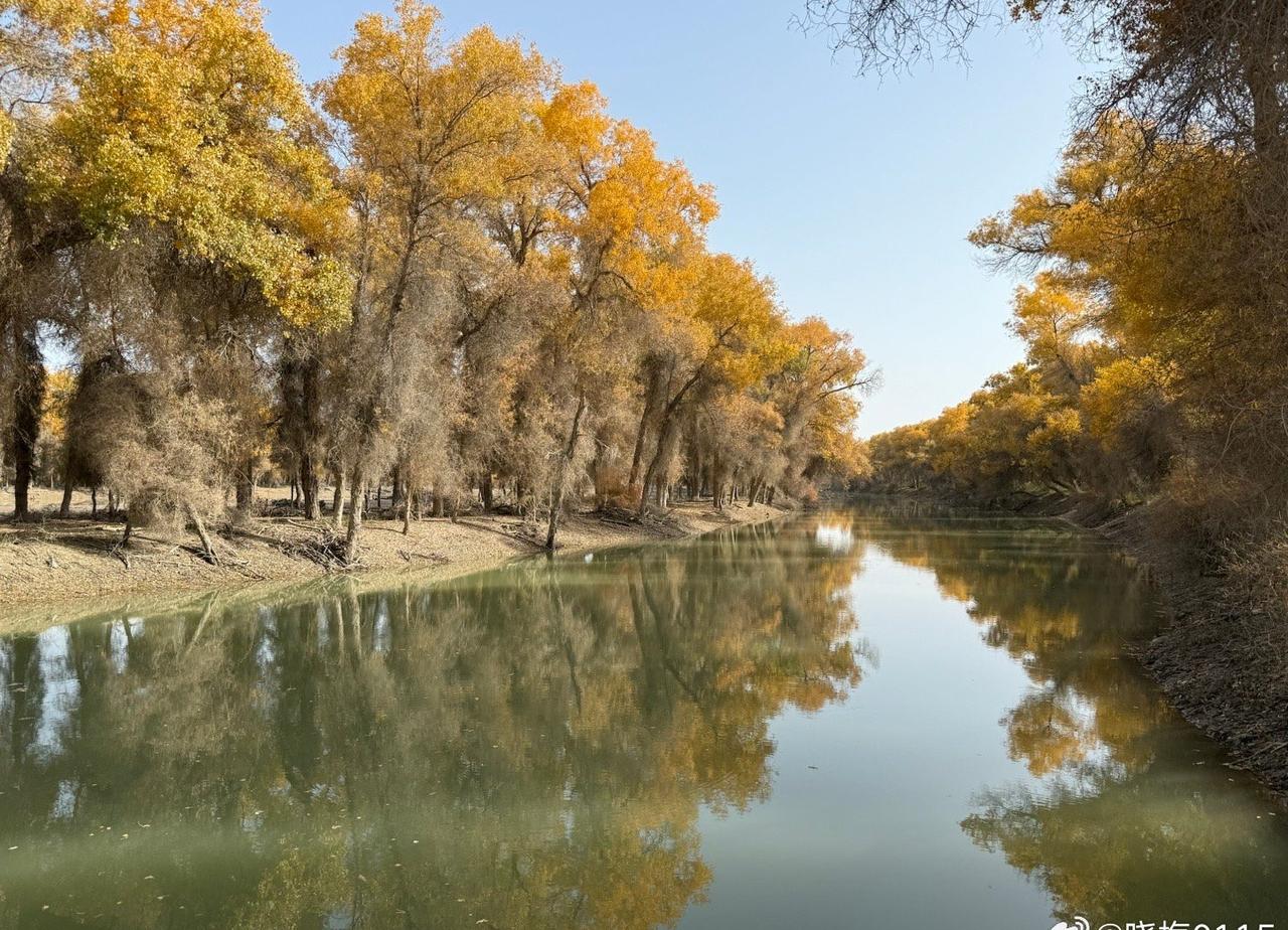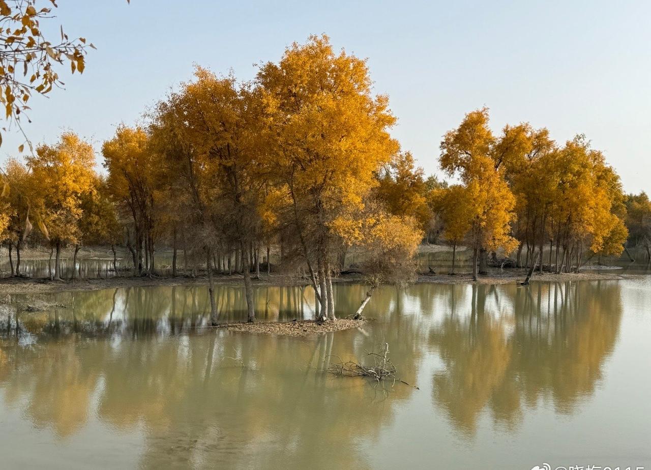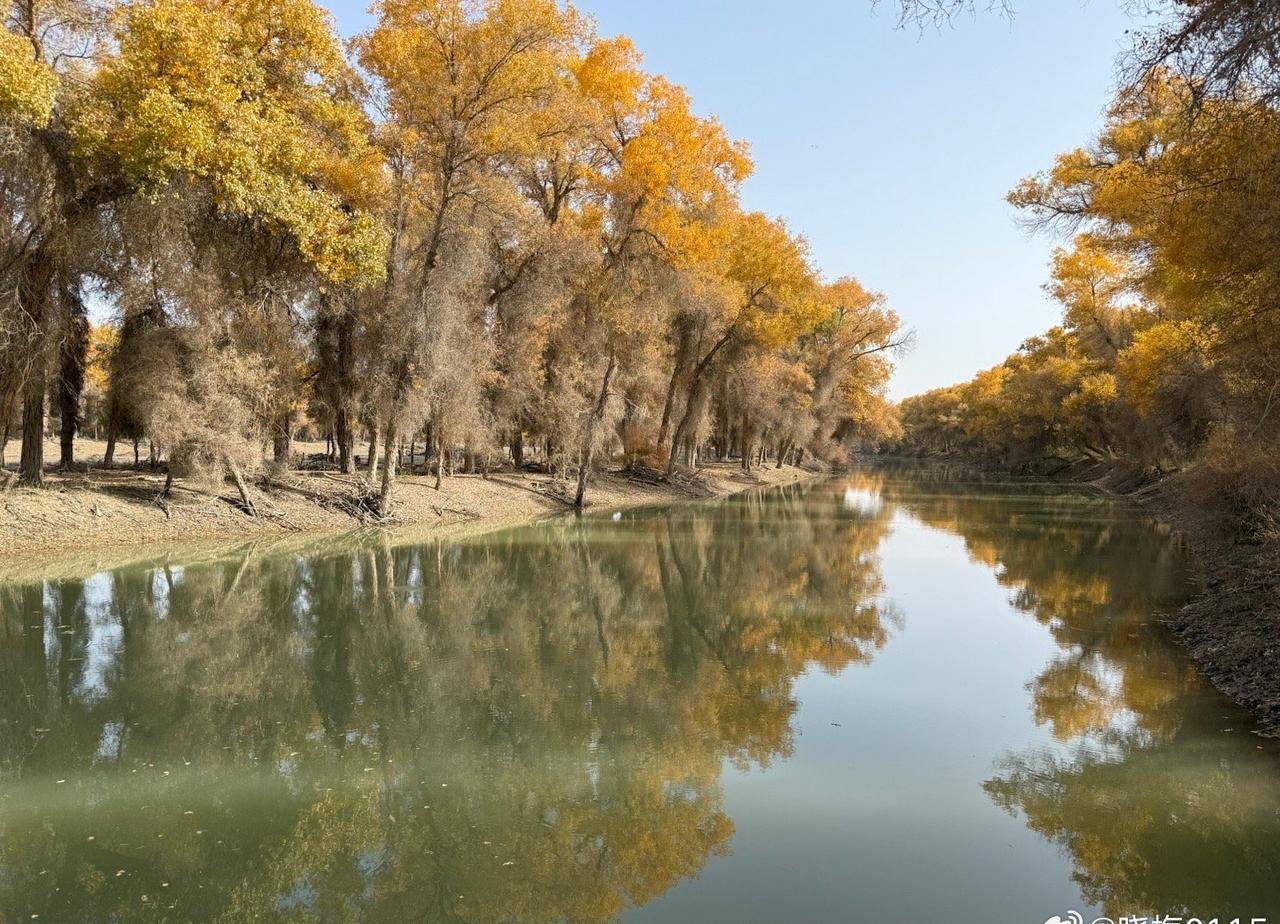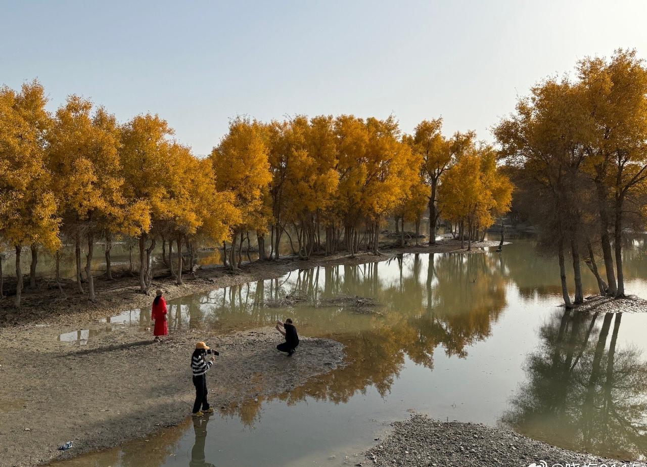 轮台塔里木胡杨林。十月的南疆,是被胡杨点燃的时刻。塔里木河两岸1400万亩胡杨林便齐刷刷换上金甲。我们自驾沿着景区的小路走了大约20公里,沿途的风景像一片片金色浪潮沿着沙漠、湿地层层铺展,美景美不胜收。