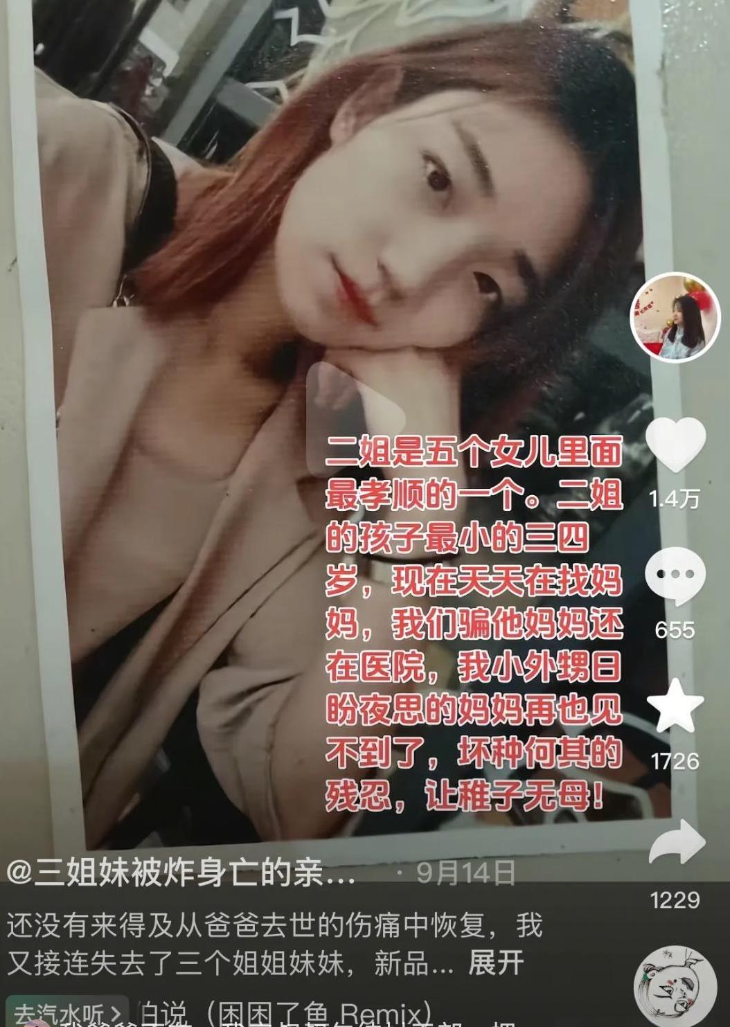 被大伯炸死的三姐妹,个个都很漂亮!她们分别是家中的老大、老二、老四,其中,最小的老四才26岁,她还没来得及结婚生子。 闪电新闻近日报道,大年初三,原本是一个阖家团圆、走亲访友的日子,这一切却被一声巨响打破。 在父亲的坟前,三姐妹正在烧纸祭奠,突然间,一枚爆炸物将她们的生命瞬间夺走,这场惨剧,不仅让亲人丧命,也将传统的祭祀仪式变成了一个精心策划的杀戮现场。 这个令人心惊的事件背后,凶手是三姐妹的亲大伯王某东,王某东,经过七个月的精心准备,将买来的两箱烟花爆竹改造成了致命的炸弹。 他将这些爆竹埋藏在弟弟的坟前,等待一个“合适的时机”来引爆它,那个时机,就是大年初三,三姐妹来祭拜父亲的时候。 早在2023年11月,王某东就悄悄跟踪过二侄女,准确锁定了墓地的位置,为了确保成功,他决定在三姐妹祭拜父亲的时候行动,因为那天她们一定会来。 三姐妹为了祭奠父亲,照常在父亲的坟前烧纸,她们一如既往地进行着祭祀仪式,爆炸发生得非常突然,在一瞬间夺走了三姐妹的生命。 根据调查,这场悲剧的根源可以追溯到老一辈人留下的土地纠纷,多年来,这种积怨在两家人之间不断发酵,关系日益紧张。 尽管三姐妹的父亲早已去世,但这段未解的仇恨一直存在,无法得到化解。 2024年5月,一场口角引发的肢体冲突,似乎是点燃这场悲剧的导火索,从那时起,王某东便开始筹备这一切。 而事发当天,三姐妹的亲人们并未全部到场,三姐和五妹因为工作值班,错过了祭拜,幸运地躲过了这场灾难,当天风大,家中的孩子们也被留在了家里,免遭这场致命的袭击。 这种“幸运”却成了不幸的延续,三姐妹的家庭瞬间崩塌。大姐一生辛勤工作,生活刚刚看到了一些希望;二姐有一个年幼的孩子,那个孩子天天哭着找妈妈,却再也见不到她;四姐,家中学历最高,本应拥有光明前景的她,也没能逃过这场悲剧。 母亲一下失去了三个女儿,每天以泪洗面,无法承受这突如其来的打击,三姐虽然侥幸躲过一劫,但心灵上的创伤更为深重。 她已经无法再接近父亲的坟墓,那个本应是她和父亲对话的地方,如今成了她永远无法摆脱的噩梦。 闪电新闻报道被害家属称,王某东在10月14日已经被执行死刑,也是罪有应得,希望被害人家属能尽快走出阴霾,好好生活。 信源:闪电新闻