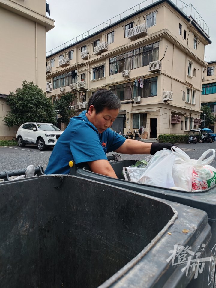 “我每天都提前半小时到岗,一直干到10点,来拉垃圾的师傅都说我分类做得好,地面弄得清爽,垃圾桶盖子盖得也牢,不会垃圾堆起来顶开盖子。我是凭自己良心做事的,村里相信你让你来做,就一定得干好。我不是为了赚钱,一天才25块(丁阿姨说因为她做得好后来涨了5块),家里房租收入一个月就有2万元。”