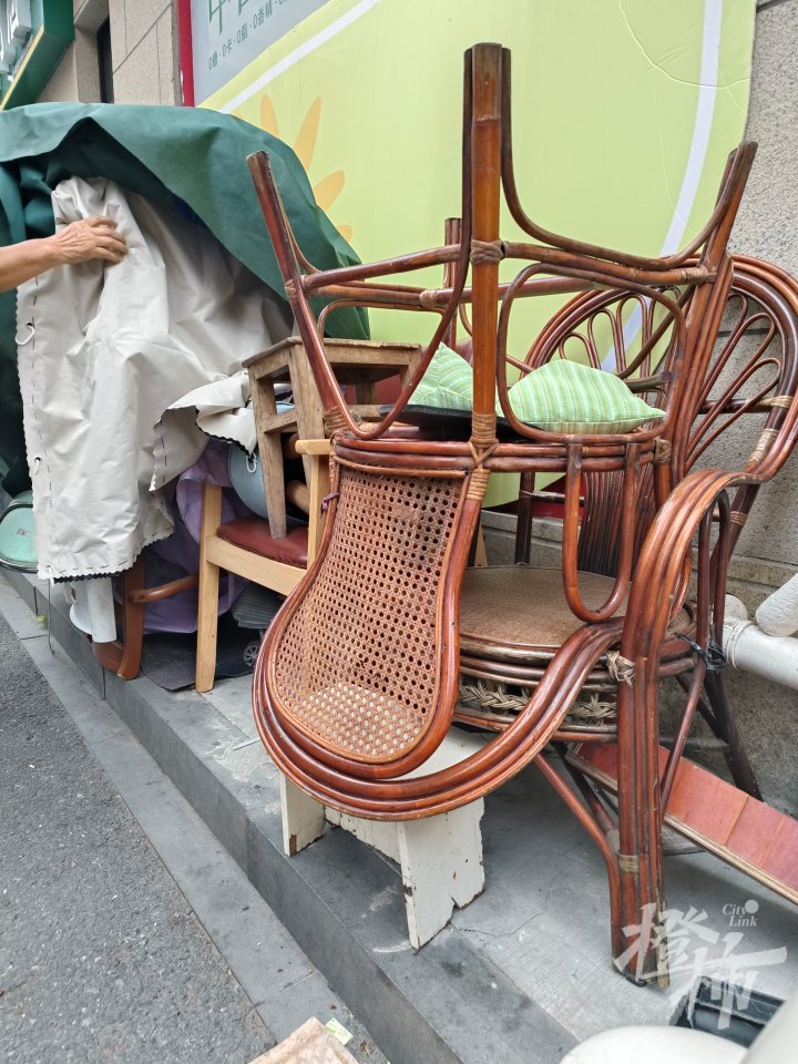 丁雪莲堆在自家墙边供邻居们休息的椅凳