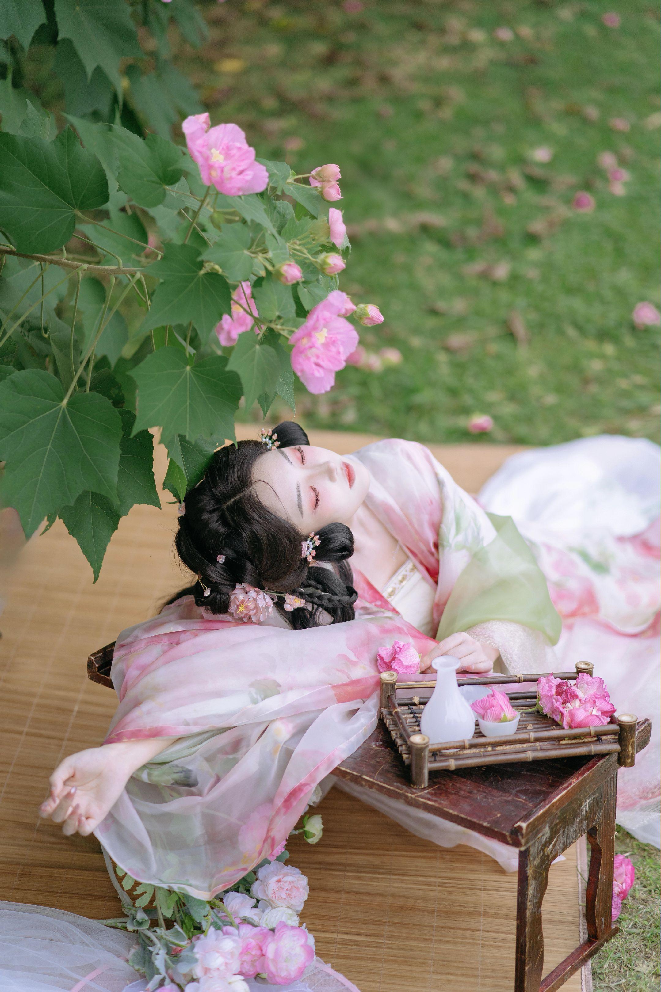 芙蓉花下眠。摄影:本人 造型: 出镜