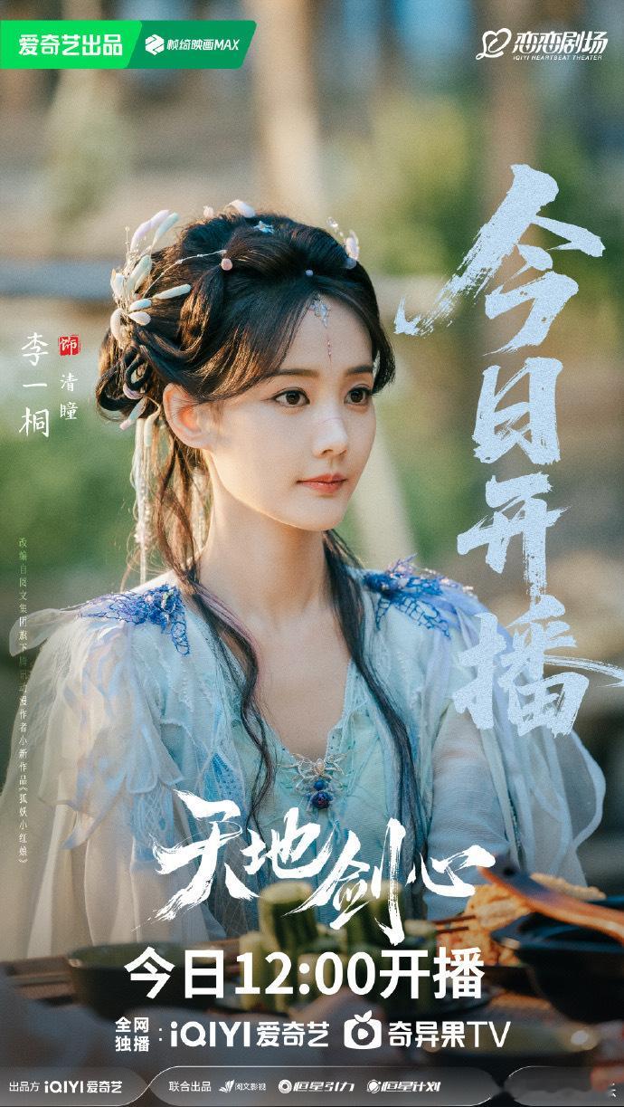 李一桐天地剑心开播海报 清瞳真的来啦!李一桐把清瞳的少女羞涩与内心力量拿捏了~ 今天12点锁定,见证这场唤醒自由与真爱的奇幻之旅!