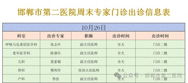 3、温馨提示:专家出诊信息可能因临时工作调整发生变动,就诊前可拨打咨询电话(0310-3132237)确认最新排班。