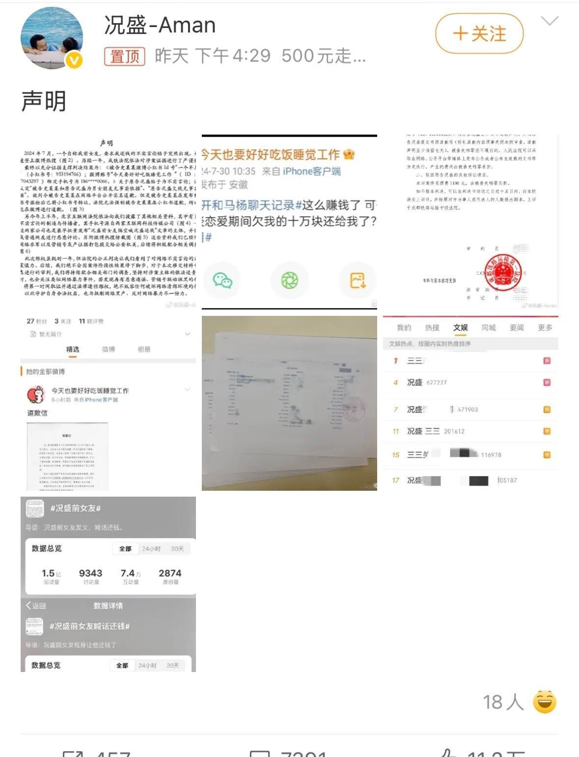 疑似况盛前女友回应此前况盛发文表示之前所谓的欠前女友💰为造谣并发布了相关声明,结果被前女友出来打假了