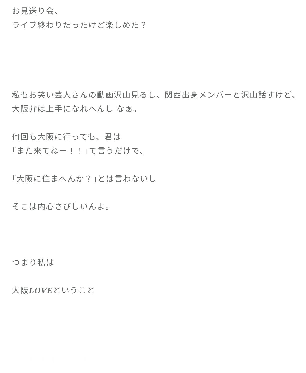 松尾桜「右側通行!聞いたことはあったんだけど、忘れてて左側に乗ろうとしたら前に誰もいなくて、おおおおおおお〜と心の中で言ってしまった。だーいすき(何が)。大阪に染まったたこさくが怒りに来たよ。けど今回は帰宅したよ。今度また誰か悪いことしたら、すぐ出てくるよーーーー。もちろん夢でも構わず説教しにくるよ。」
