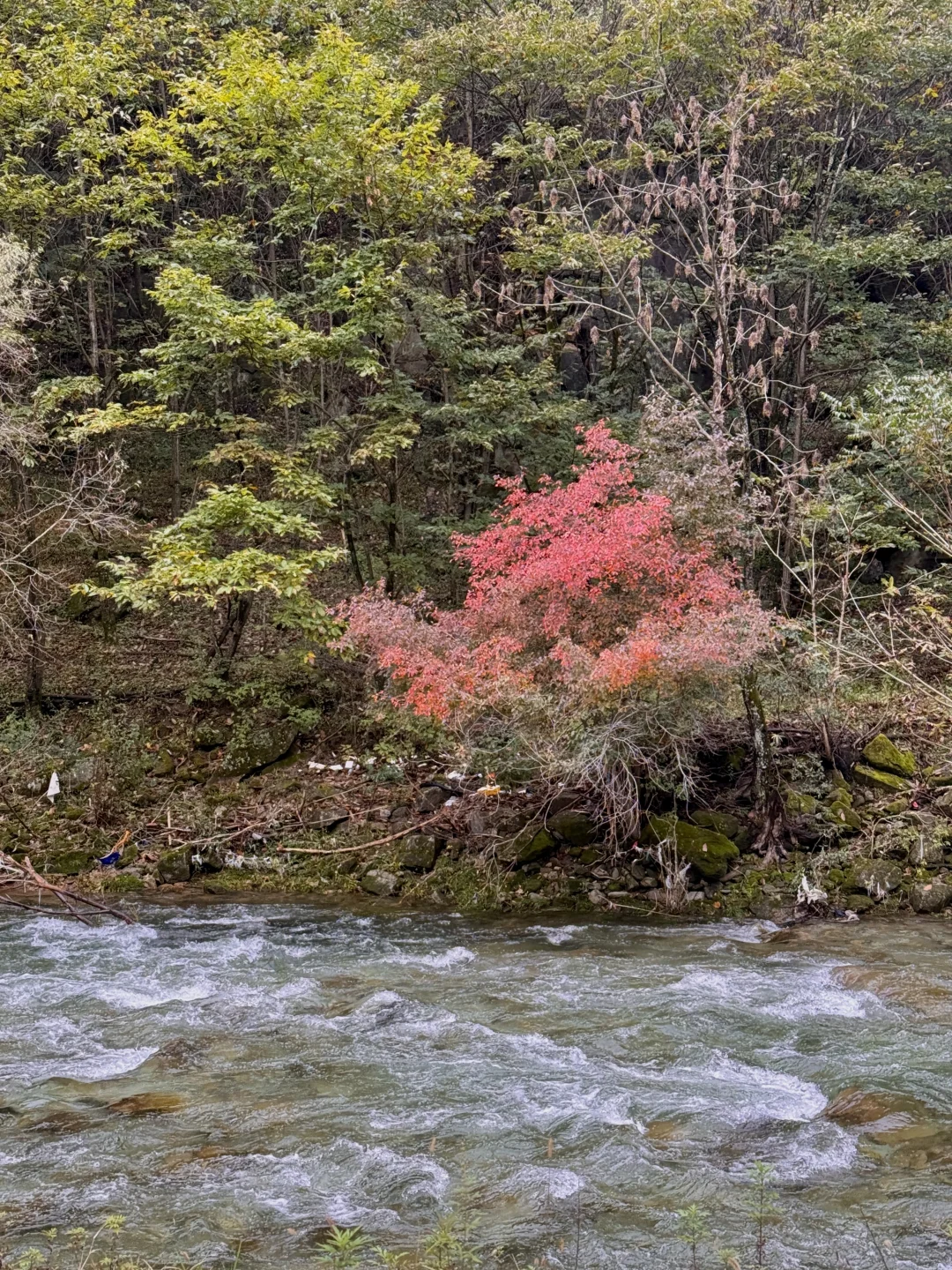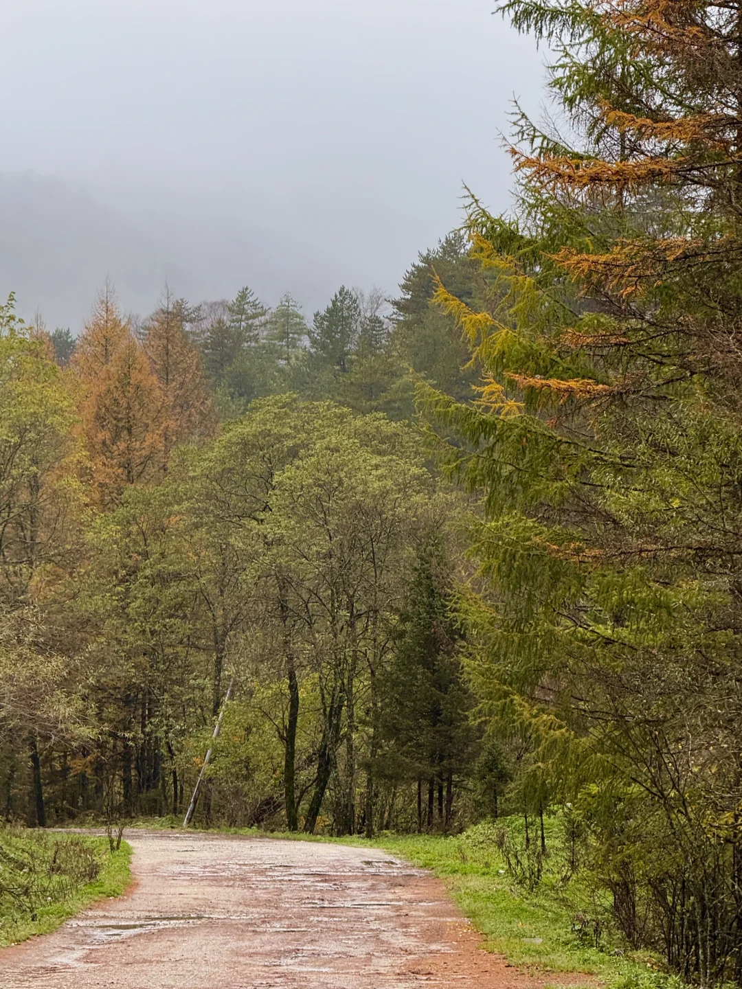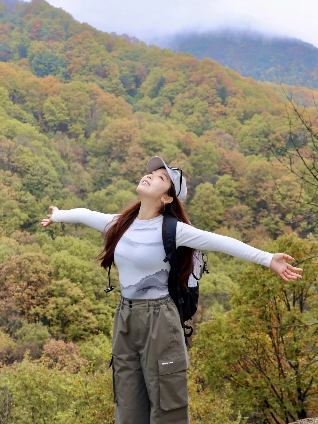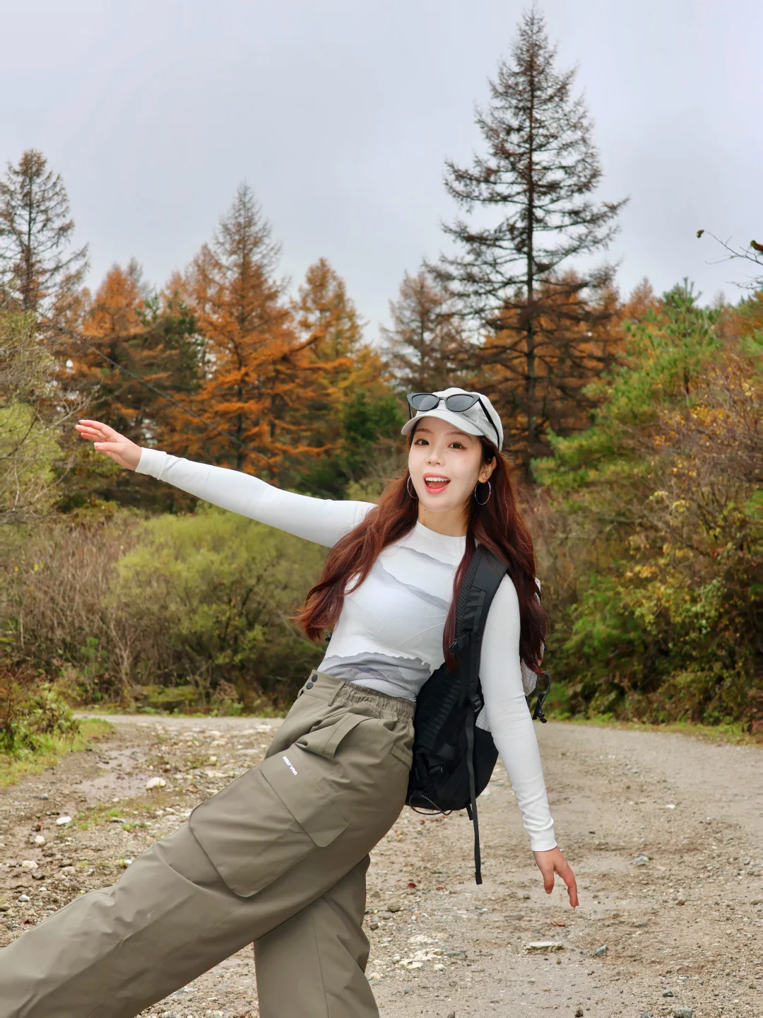 一直想来平河梁➕月太路这条路线赏秋 今年终于圆了这个心愿✅ 最近连绵的雨,月太路内的叶子已经开始掉落 但部分树木还保持着绿色 唯一遗憾的是没找到小青蛙路牌🐸 不过自驾、骑行过来走走也是不错的选择~ 🚗我的路线: 由于沣峪口封闭,所以我从朱雀高速口出➡️户菜路➡️210国道➡️月河坪村➡️到达月河坪隧道口右拐直行➡️40分钟左右到达平河梁国家级自然保护区”➡️继续直行到达冷杉林 小Tips: 1️⃣这条山路弯道较多,比较考验司机技术,注意安全,部分路段没有信号 2️⃣广货街可以吃饭,但路程较长,开车过去约3-4h,还是要备好水和食物补给 3️⃣免费野山,备好食物和水,随手带走垃圾 4️⃣山里温度低,走一走又很容易出汗,所以保暖防风的衣物➕内层打底同样重要 我这次穿了工装设计的火山羽绒裤,90白鹅绒防风保暖效果也不错,宽松轻盈的裤子穿起来真的舒服 身上水墨设计的速干衣不仅颜值高,包裹性也很好,贴身但不紧绷,出汗速干没有黏腻湿冷感,遇上低温天气时也能保暖~