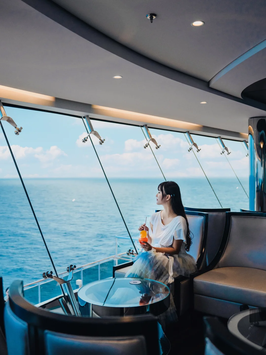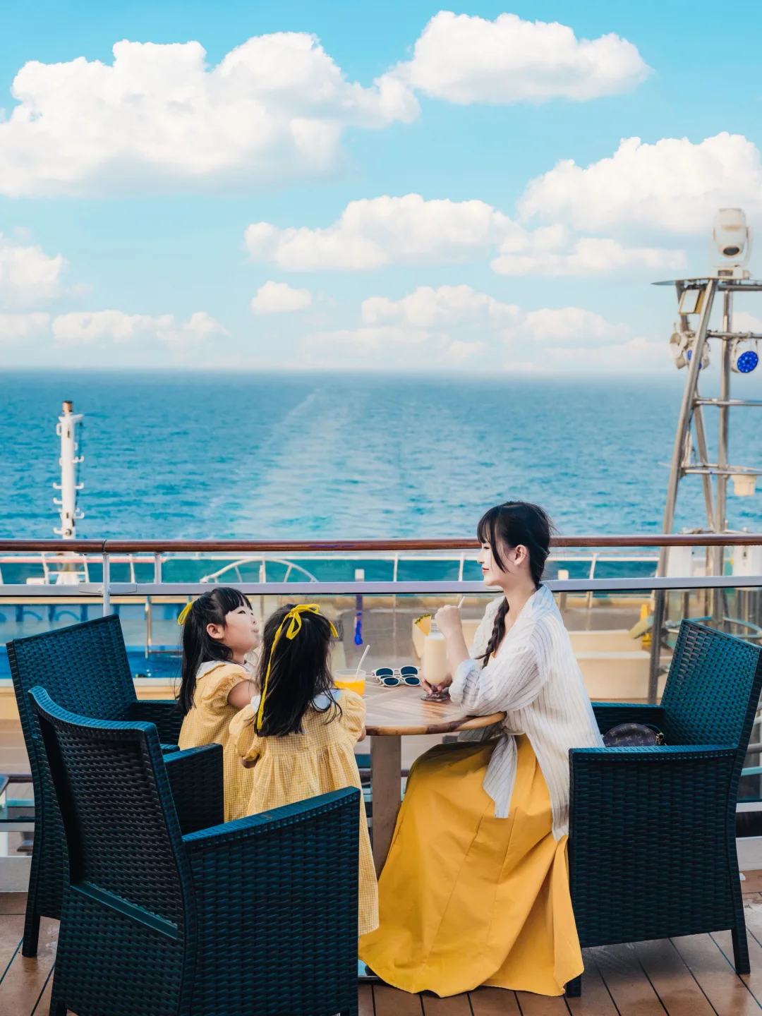 🔘船尾甲板上:视野无敌开阔,适合拍摄以蓝天大海为背景的照片