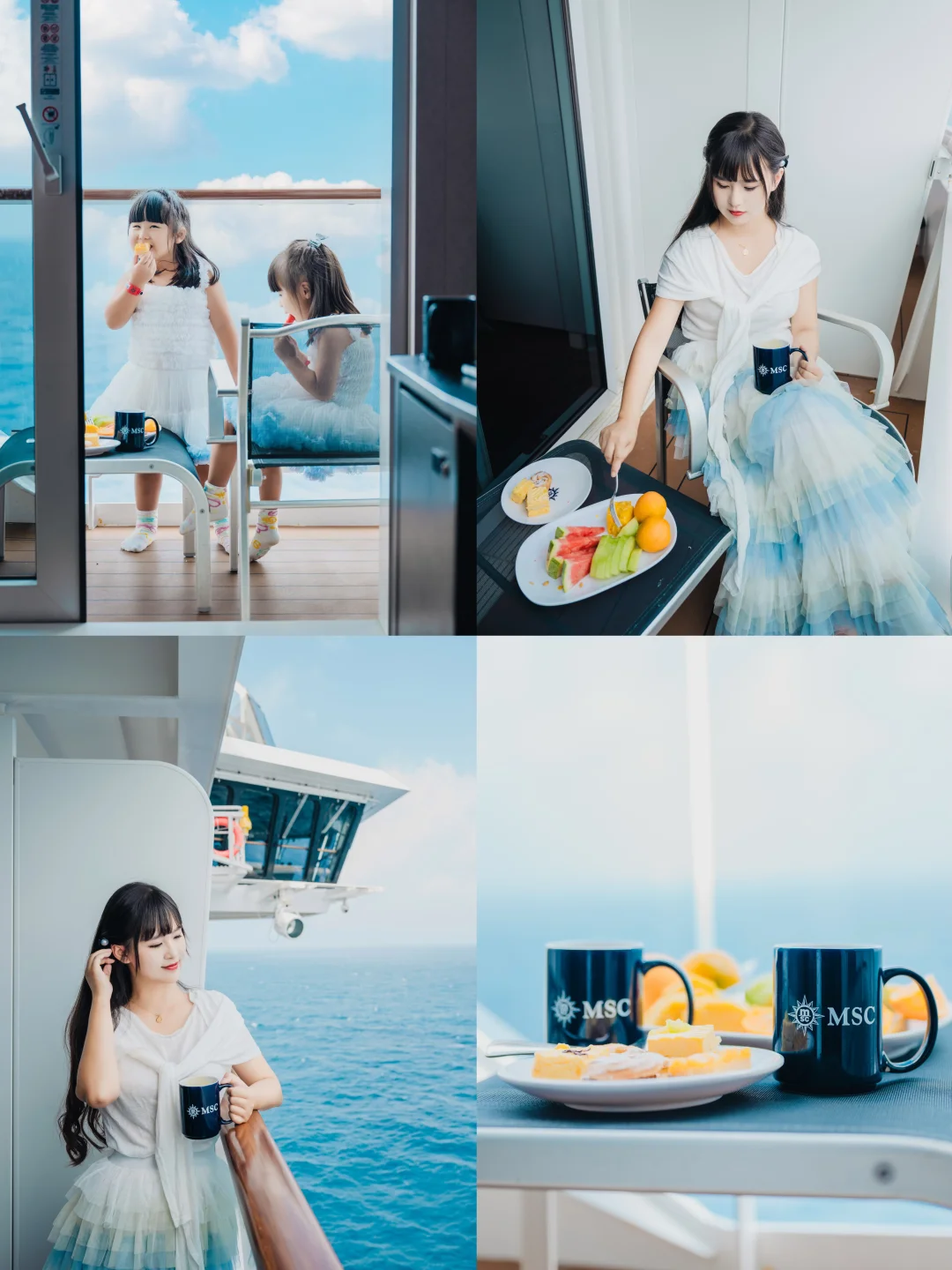我们一家四口住的阳台亲子房,有一张大床和一张上下铺,而给长辈们定的是内舱房,预定时特地让客服小姐姐给我们安排在了对门,打开房门一秒团聚,关上房门各自安好。一大家出行这样选择性价比更高。