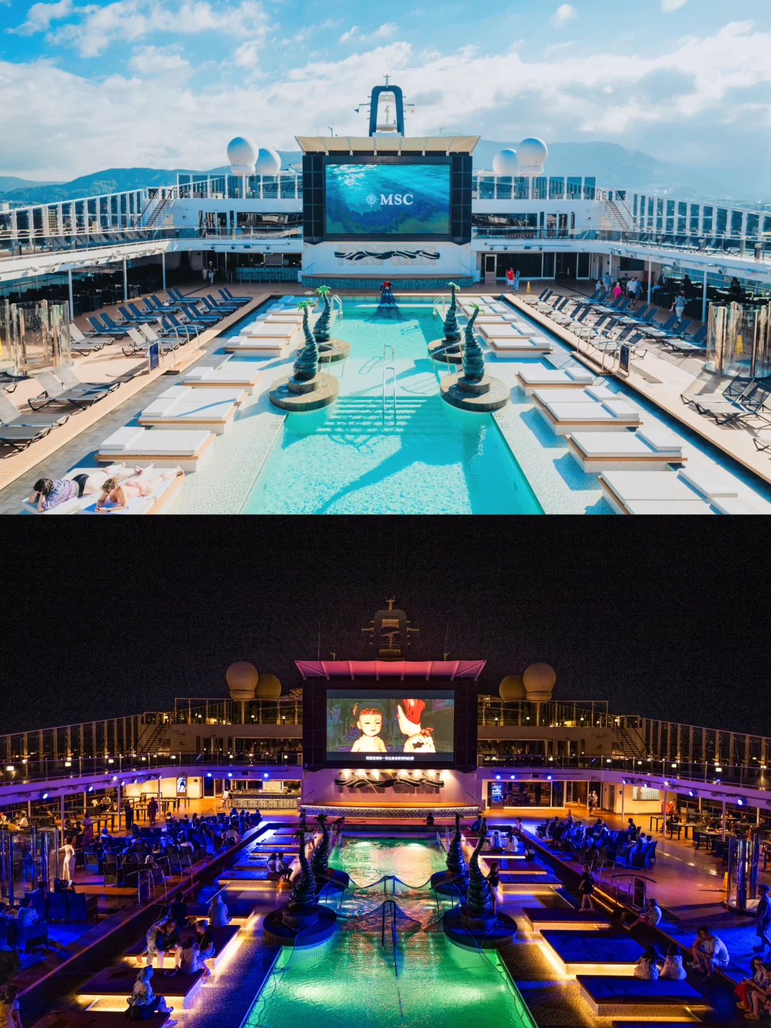 船上酒吧很多,风格各异。可以购买超值的酒水套餐,托管孩子后和伴侣小酌一杯是难得的放松时刻