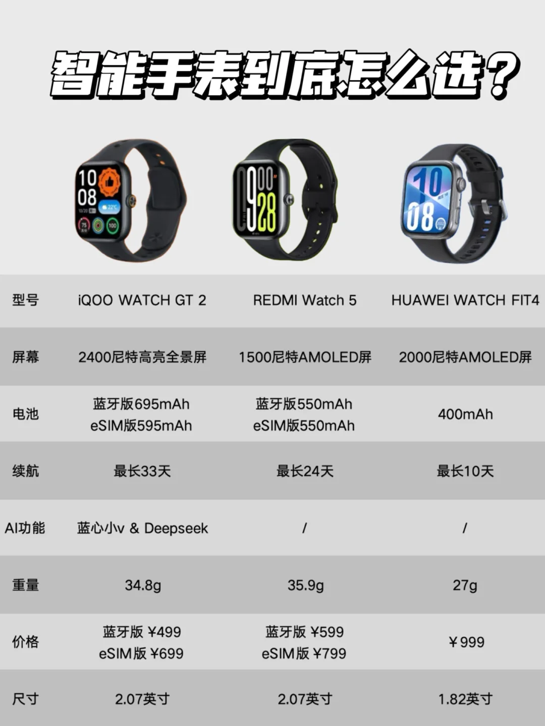 智能手表 iQOOWATCHGT2 红米watch5 华为fit4 智能手表推荐数码大玩家智能手表推荐